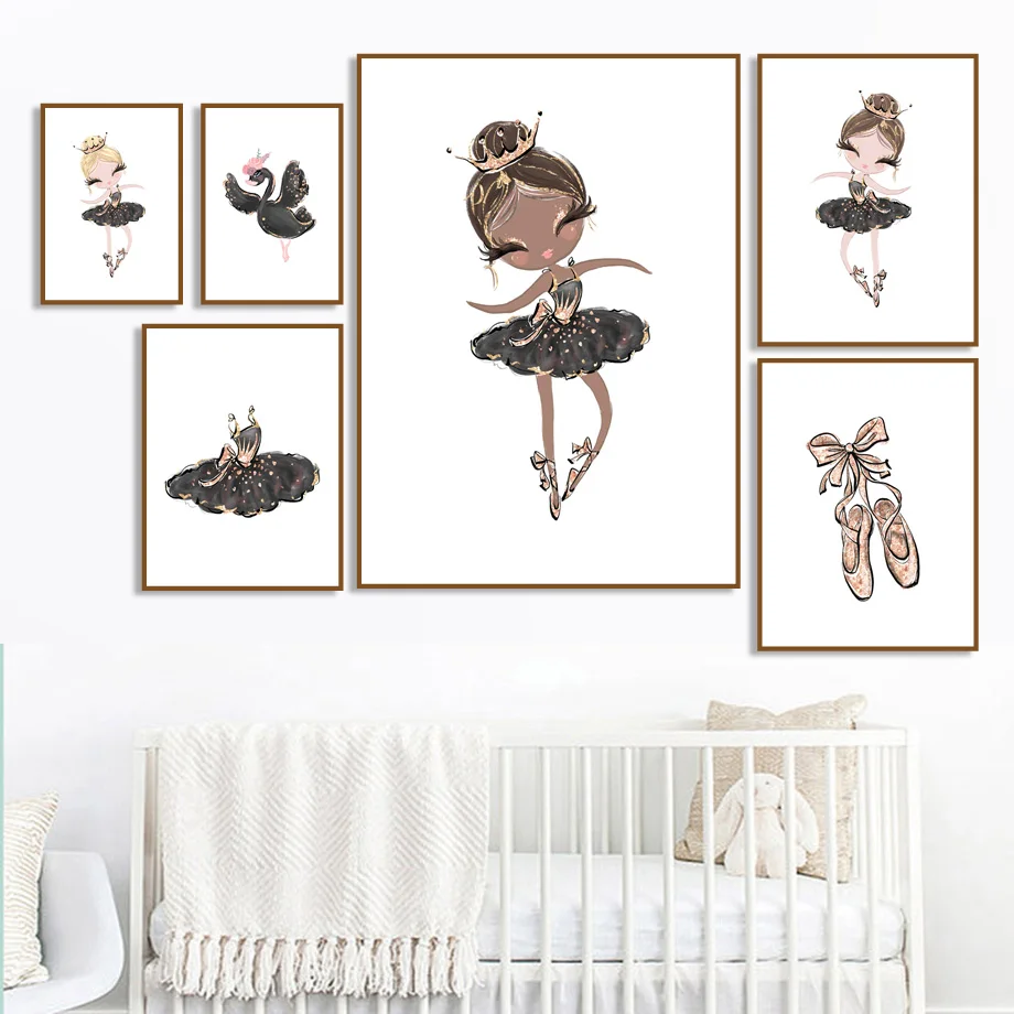 Картина на холсте с изображением балерины и черного лебедя для детской комнаты
