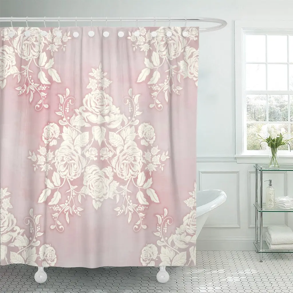 Розовые французские силуэты букет Викторианского сада розы на акварели в винтажном стиле желтые цветочные занавески для душа водонепроницаемые
