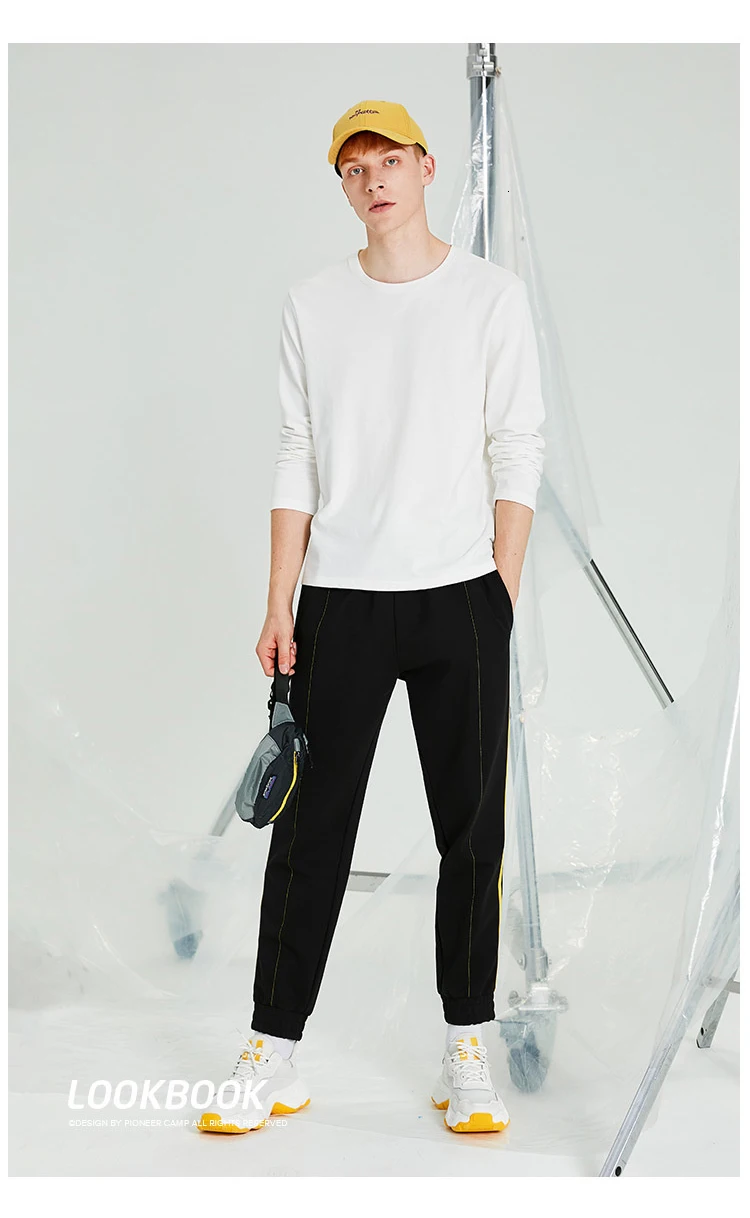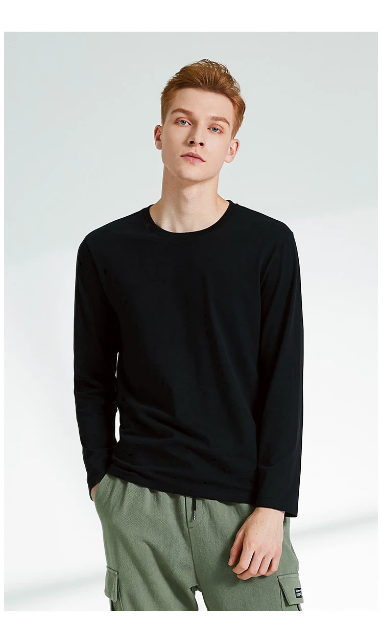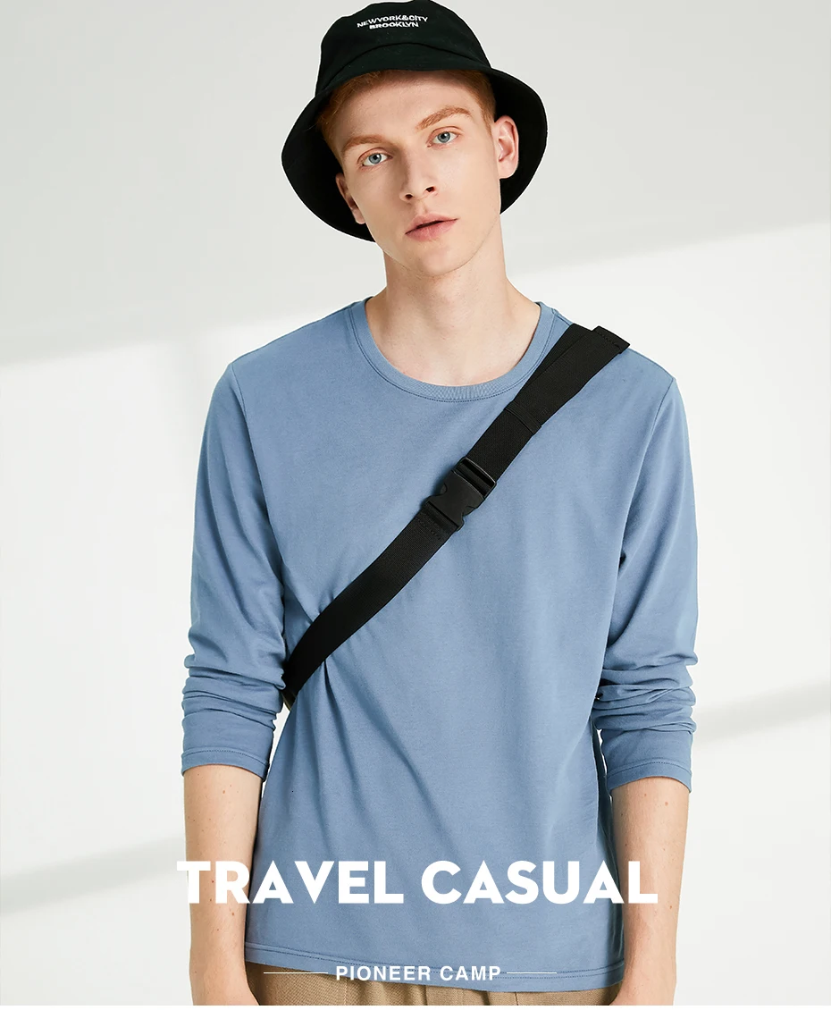 Мужская Однотонная футболка Pioneer Camp, Повседневная Однотонная футболка из чистого хлопка с длинным рукавом и круглым вырезом, ACT901278, 2019
