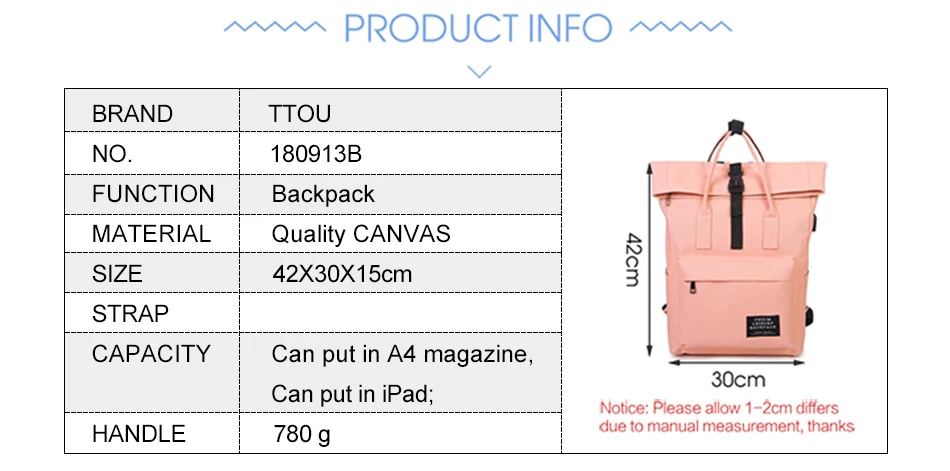 Женский холщовый рюкзак TTOU, с внешней USB-зарядкой, школьный рюкз...