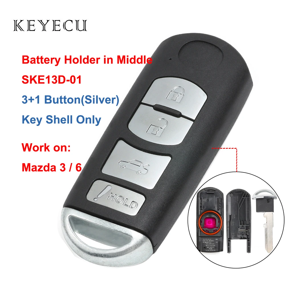 Keyecu дистанционный ключ, корпус, Крышка корпуса, 4 кнопки и аварийный ключ для Mazda 3 6 2014 2015 2016 2017 ФКС: WAZSKE13D01