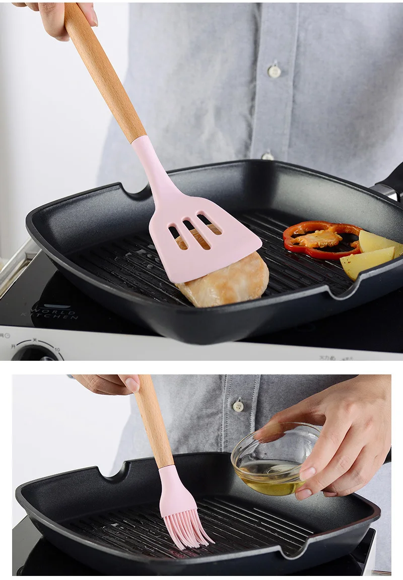 11 шт.компл. 9 шт.компл. розовая силиконовая кухонная утварь с дере...