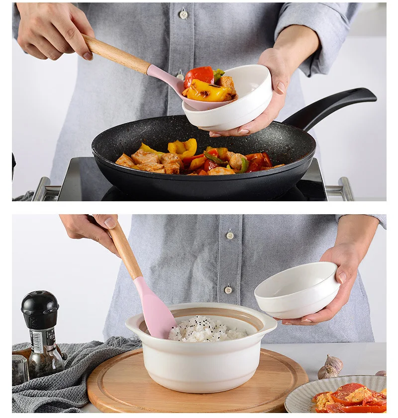 1 шт. силиконовая посуда с деревянной многофункциональной ручкой, с...