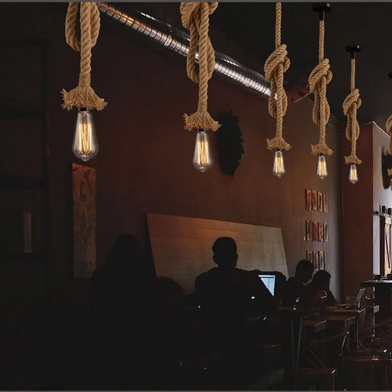 Подвесной светильник из пеньковой веревки, винтажный светильник в стиле индастриал для гостиной, кухни, домашний декор, ретро освещение в стиле лофт