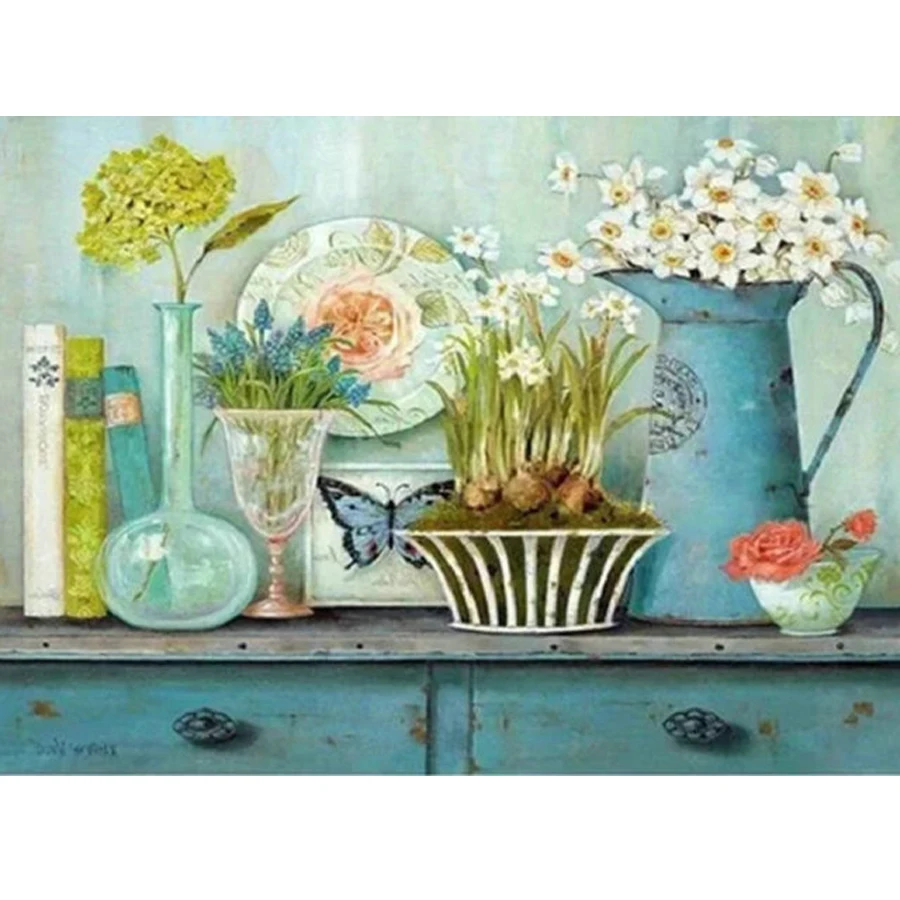 Полноразмерная 5D картина сделай сам, вышивка крестиком, ваза красн...