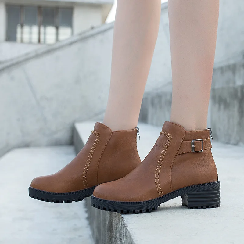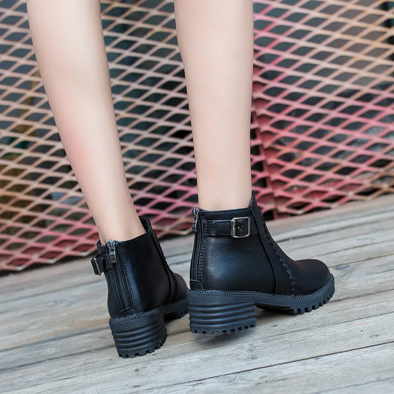 Новинка; Лидер продаж; Стиль Модные женские ботинки с круглым носком, из искусственной кожи на толстой подошве; Водонепроницаемый женские ботильоны, сезон весна-осень