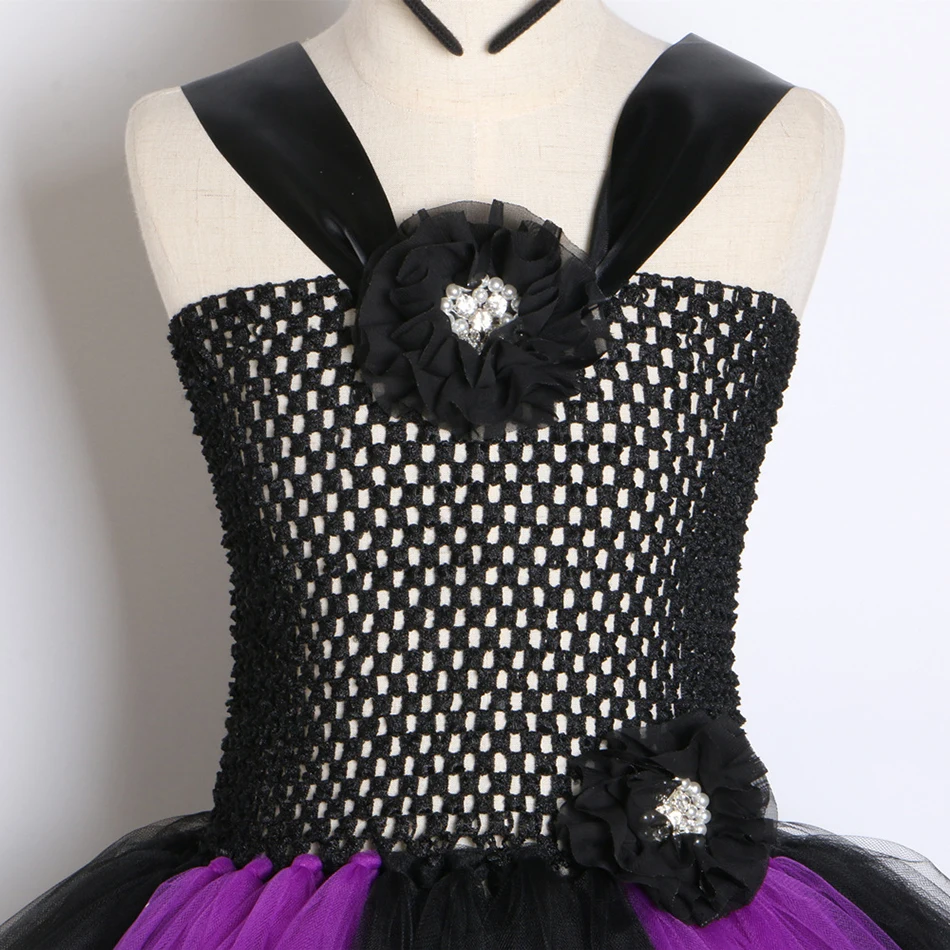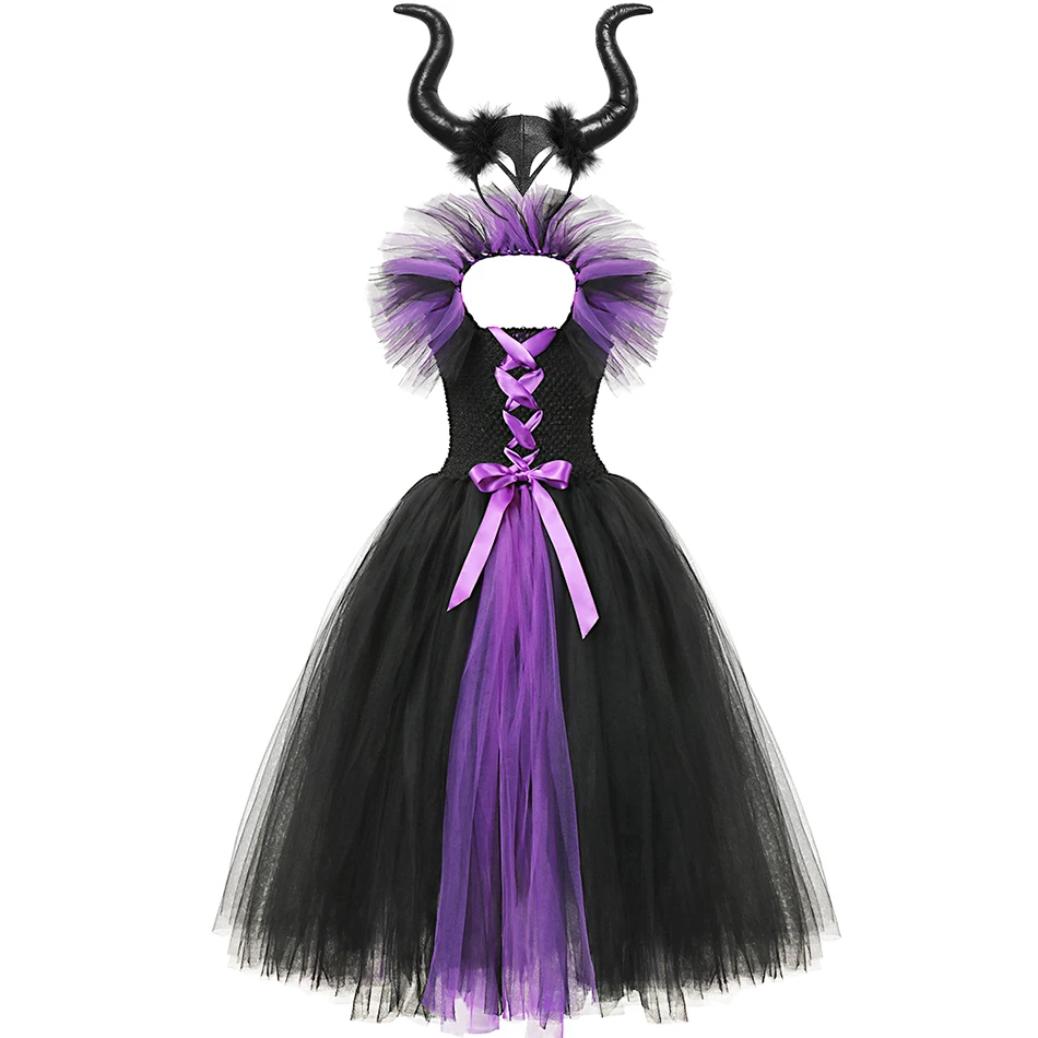 Наряд MUABABY для девочек, костюм ведьмы 2 без рукавов, злая королева, принцесса, платье-пачка с рогом дьявола, костюм на Хэллоуин, От 2 до 12 лет