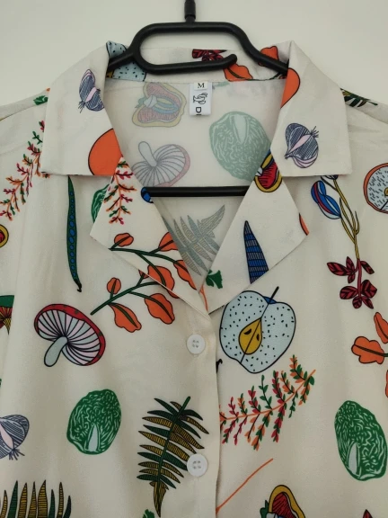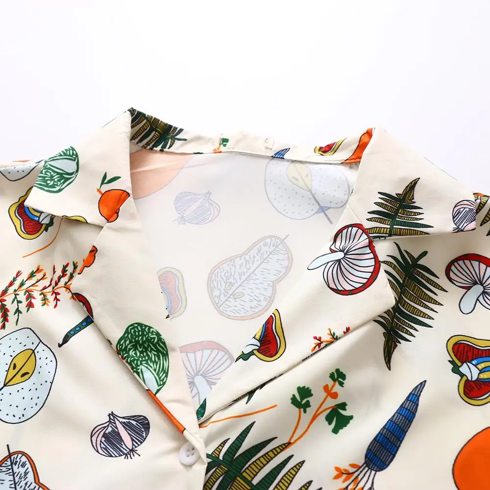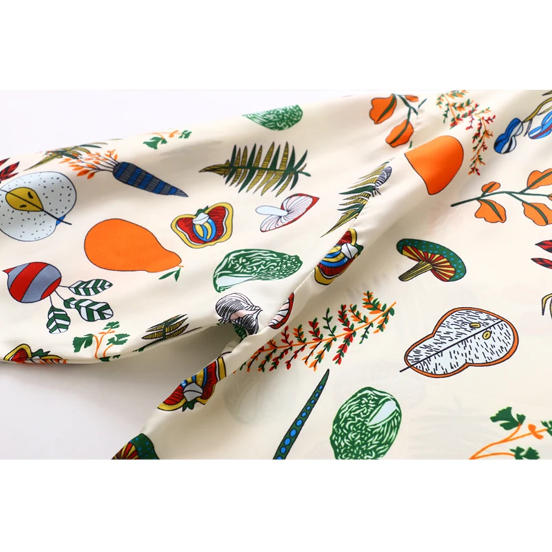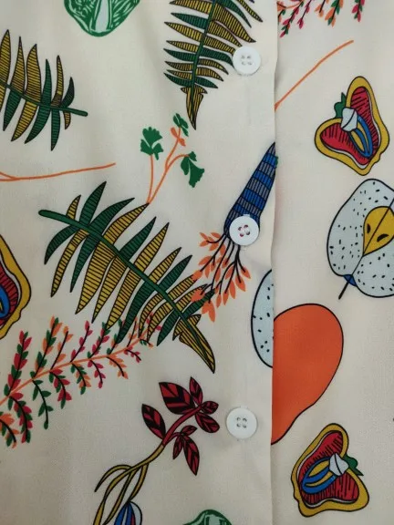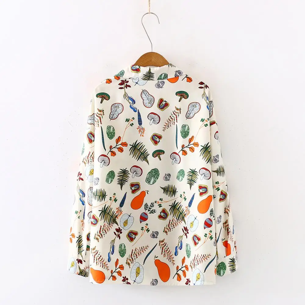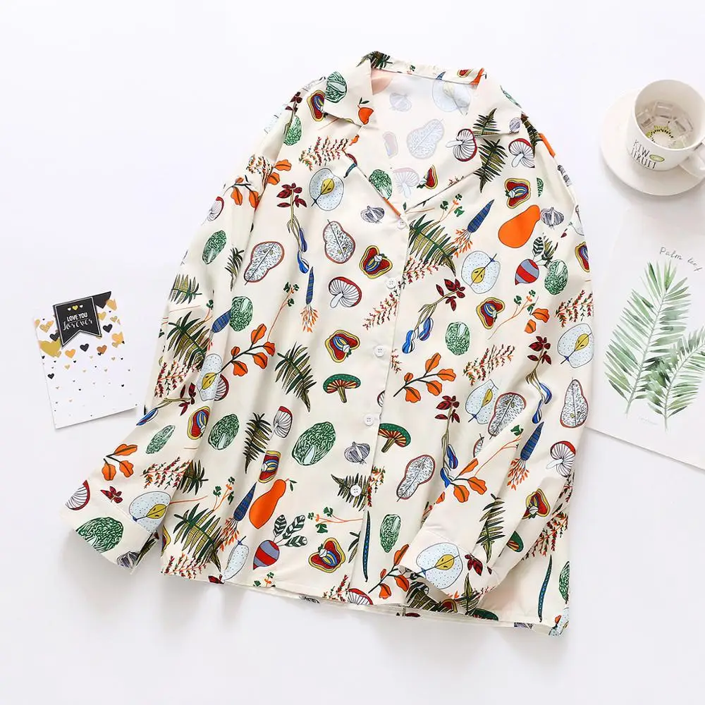 Новое поступление, шифоновая блузка оверсайз с принтом фруктов и овощей, на пуговицах, абрикосовые повседневные шикарные рубашки, женская блуза