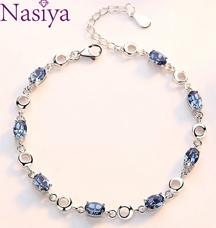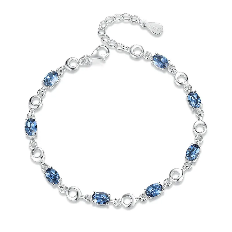 Женский браслет с драгоценными камнями, из серебра 925 пробы с синим браслеты с топазами