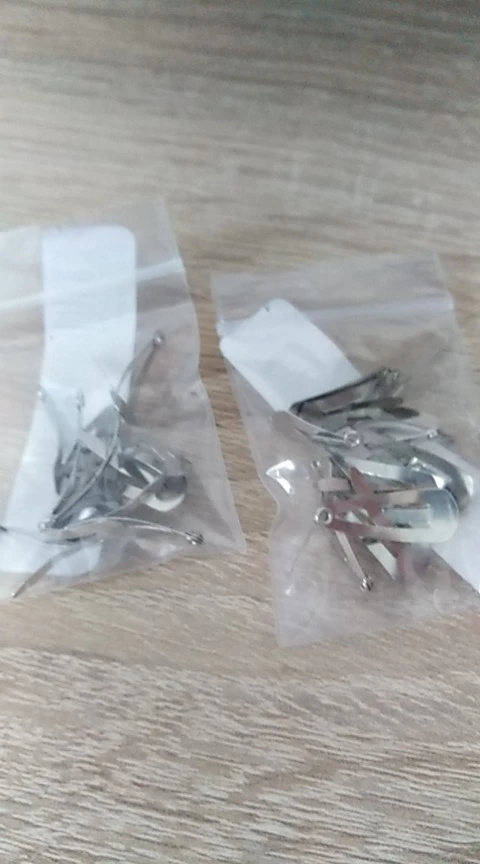 Зажимы маленькие, 10 шт. в пакетике. Фото соответствует. Для куколок в самый раз.