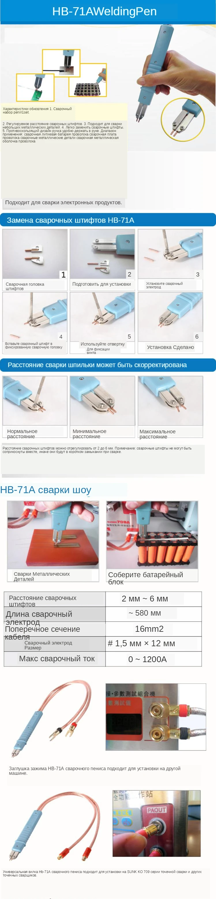 SUNKKO HB-71A Батарея точечной сварки ручка литий Батарея Профессиональный сварочный электрод для 709A 709AD серии аппараты для точечной сварки типа Y типа E