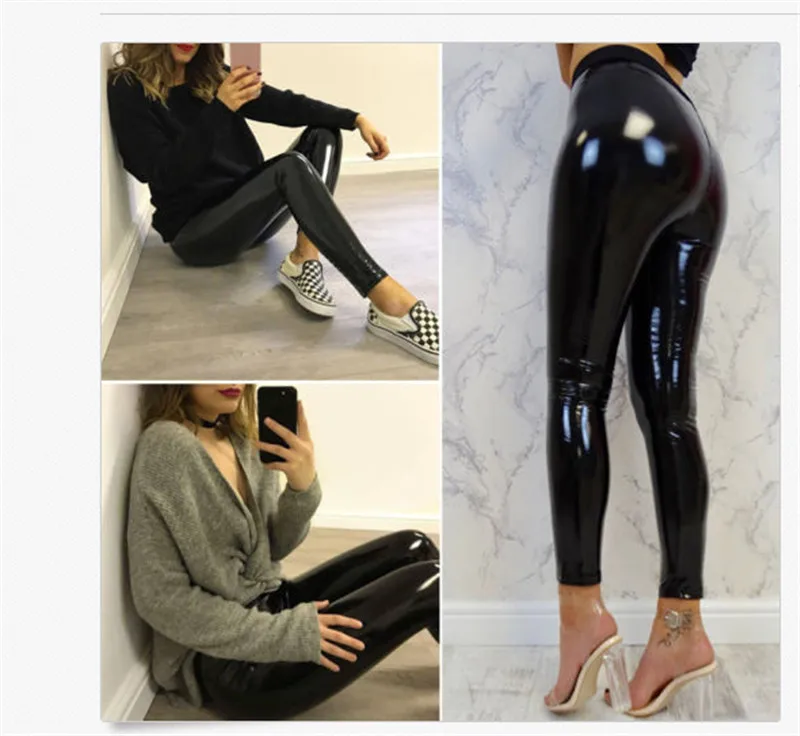 2020 Новинка; Лидер продаж женские сексуальные черные брюки тонкий мягкий прозрачный чехол для Strethcy блестящие с мокрым эффектом Искусственная кожа винил леггинсы брюки для девочек