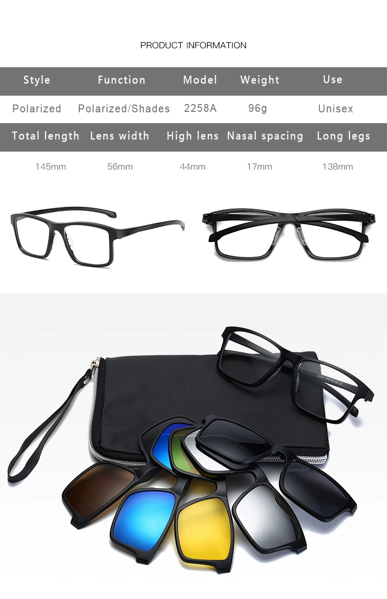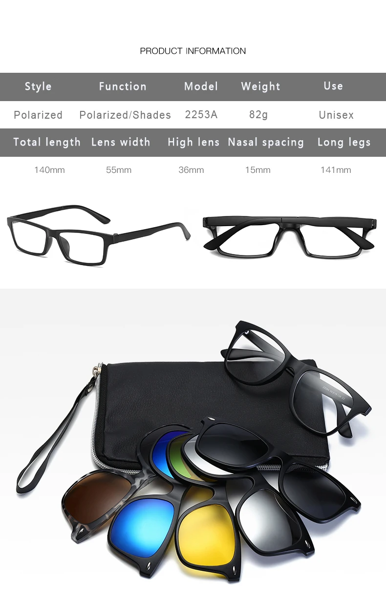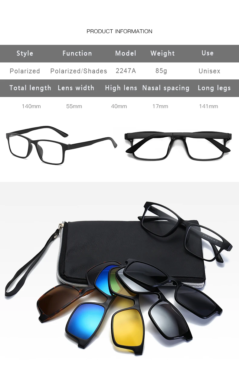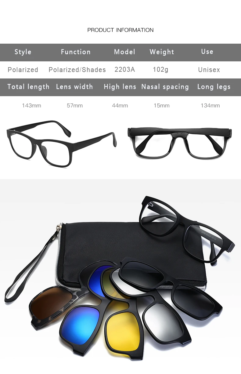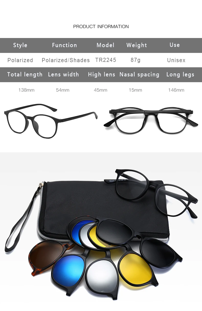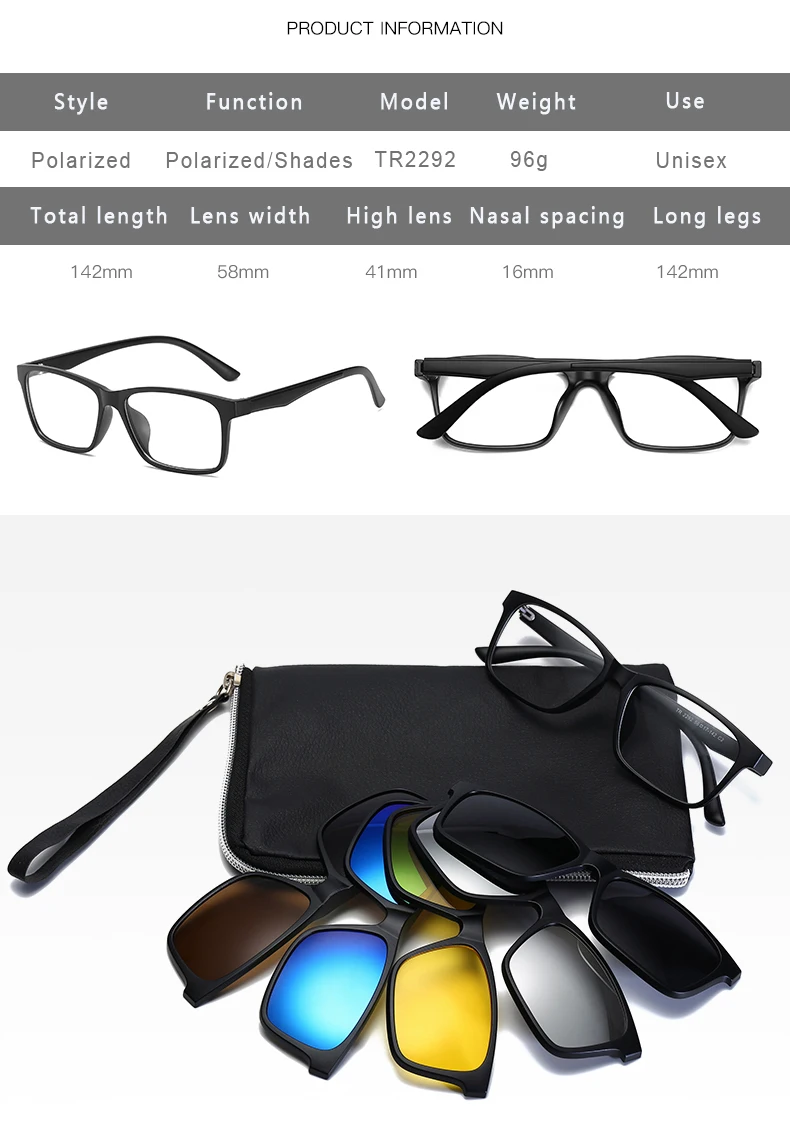 Очки солнцезащитные TR90 для мужчин и женщин, магнитная оправа с 5 ...