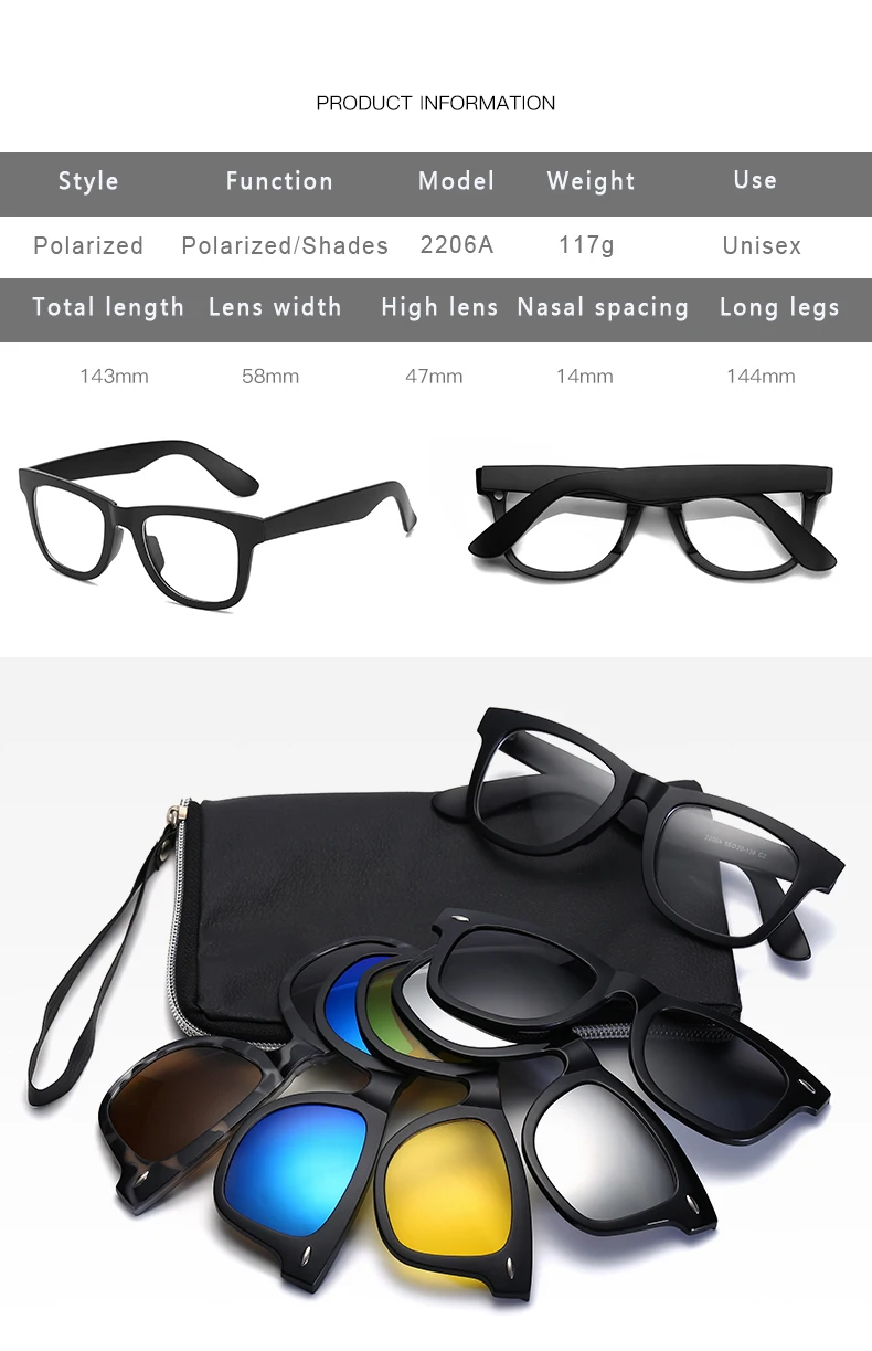 Поляризационные солнцезащитные очки 6 в 1, унисекс, с магнитной заж...
