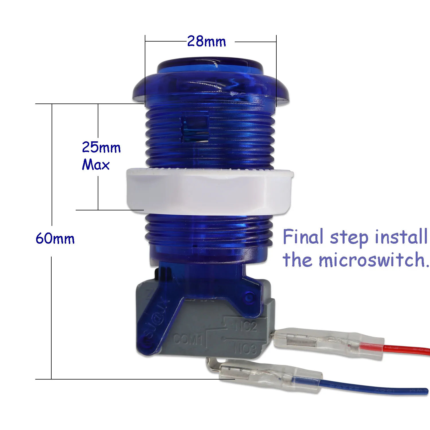Отверстие для кнопки 28 мм, отверстие для джойстика 24 ~ 30 мм, usb-кабель 180 см, кнопка и кабель джойстика 20 см.