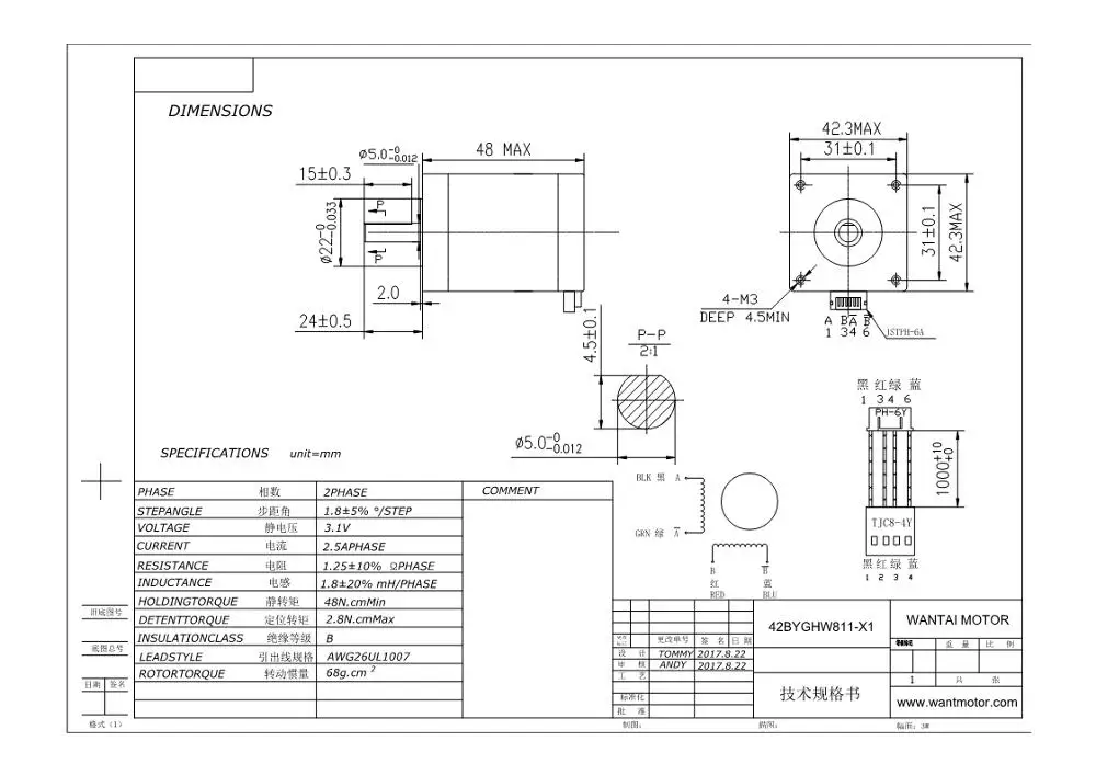 (ЕС доставка) 1 шт. мотор для 3D принтера Nema17,4800 г. См, а, соединитель 1 м провод, 42BYGHW811-X1, Wantai Stepper motor