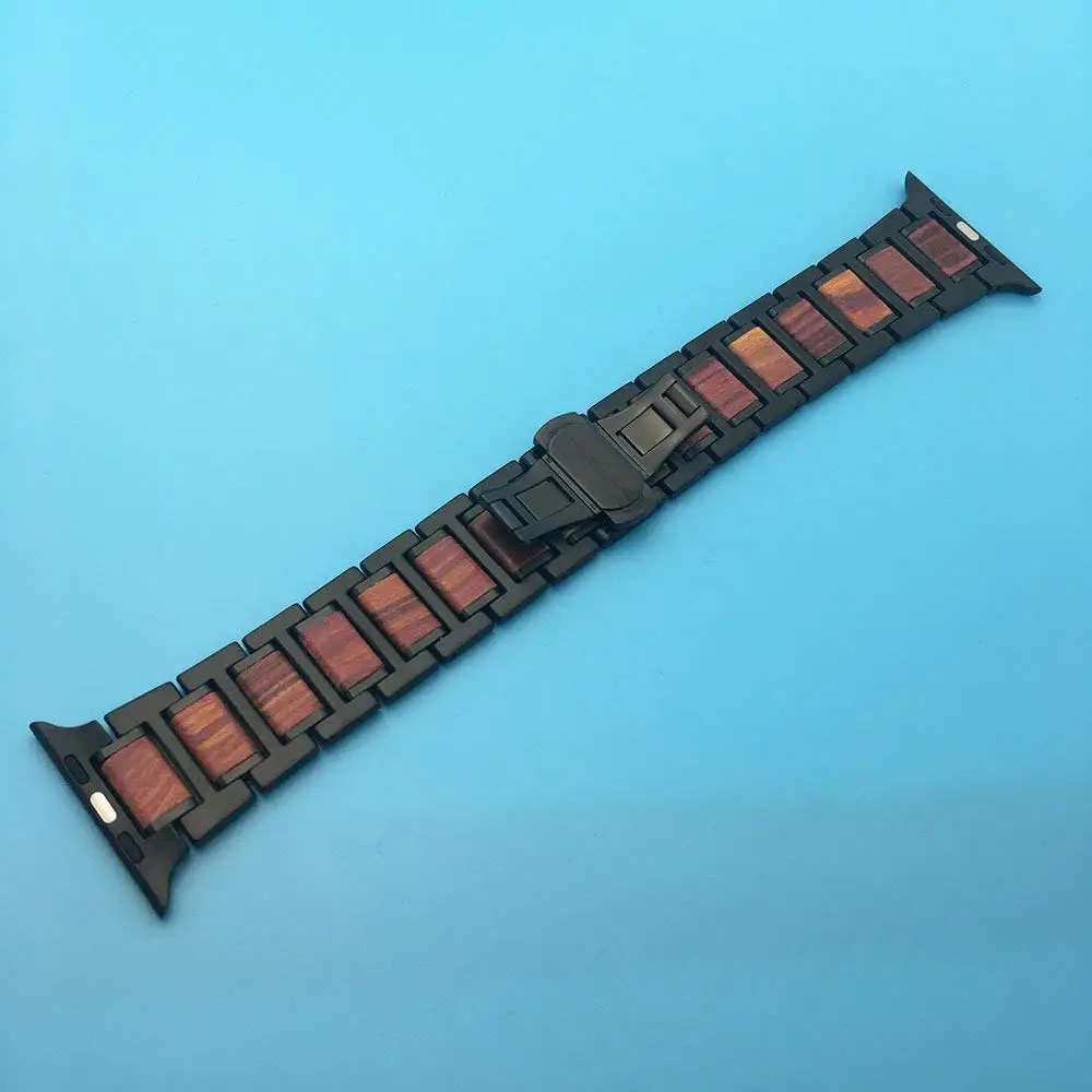 1. Изготовлено из высококачественного металла из нержавеющей стали 316L и натурального черного сандалового дерева, изготовлено по индивидуальному заказу для Apple Watch с удивительными цветами и дизайном