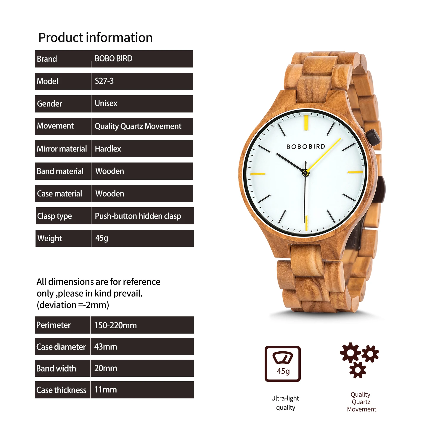 BOBO BIRD фокусируется на R & D деревянных часов. Все часы изготовлены вручную из натурального сушеного дерева и 100% натуральной кожи. Различные типы материалов, включая тик, эбеновое дерево, клен и даже бамбук, все используются в процессе создания. Эти деревья выбираются вручную нашими опытными мастерами для обеспечения исключительного качества.