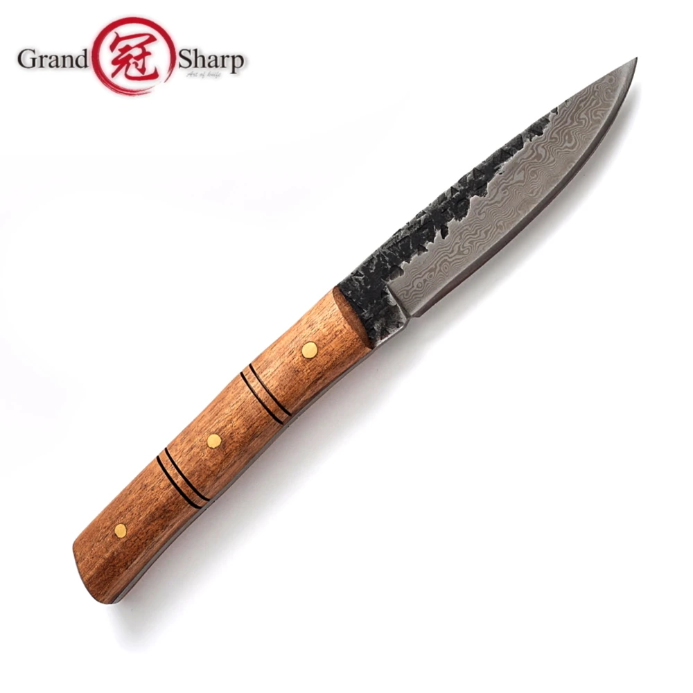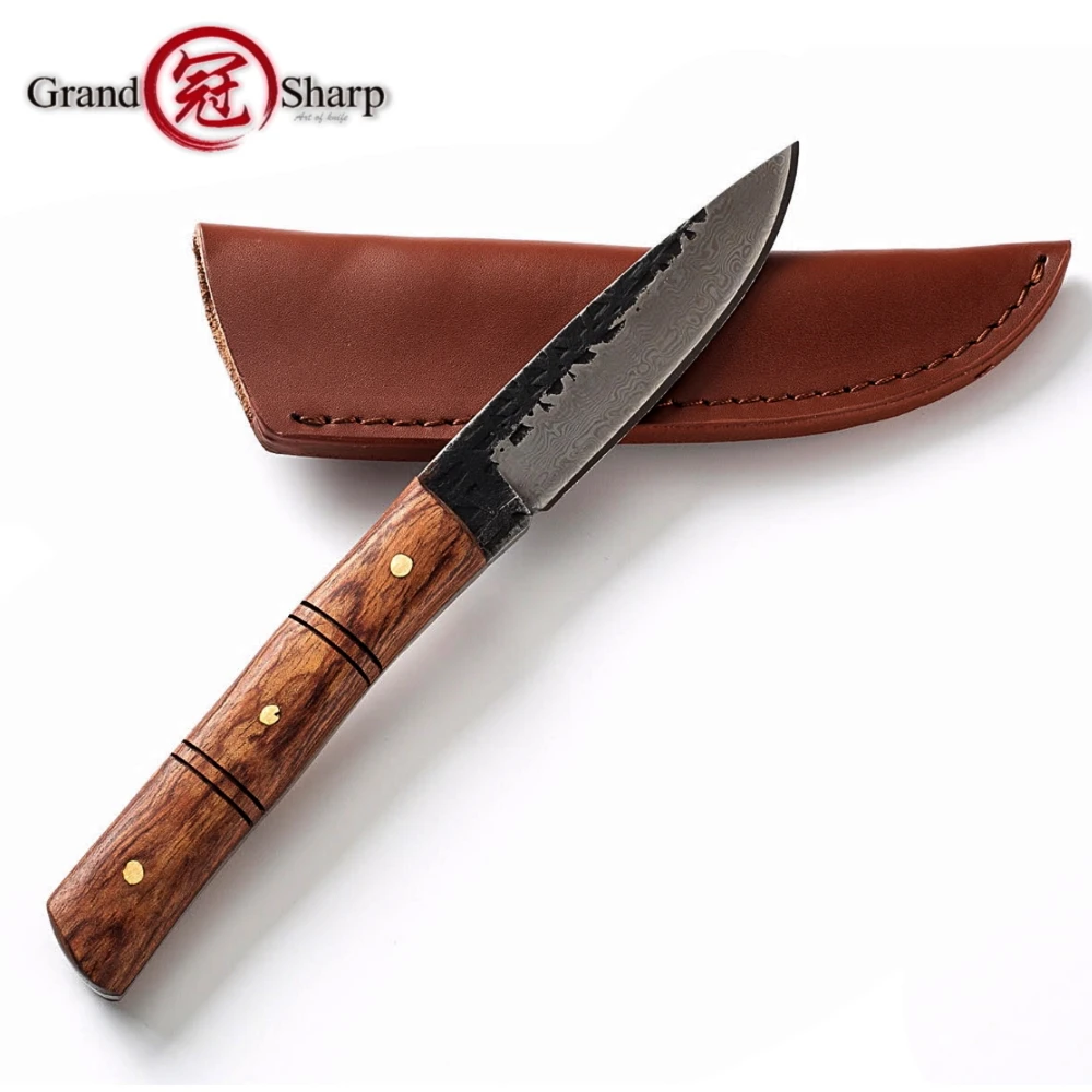 Карманный нож из розового дерева, Ручная ковка, охотничий нож из дамасской стали, ручка с фиксированным лезвием