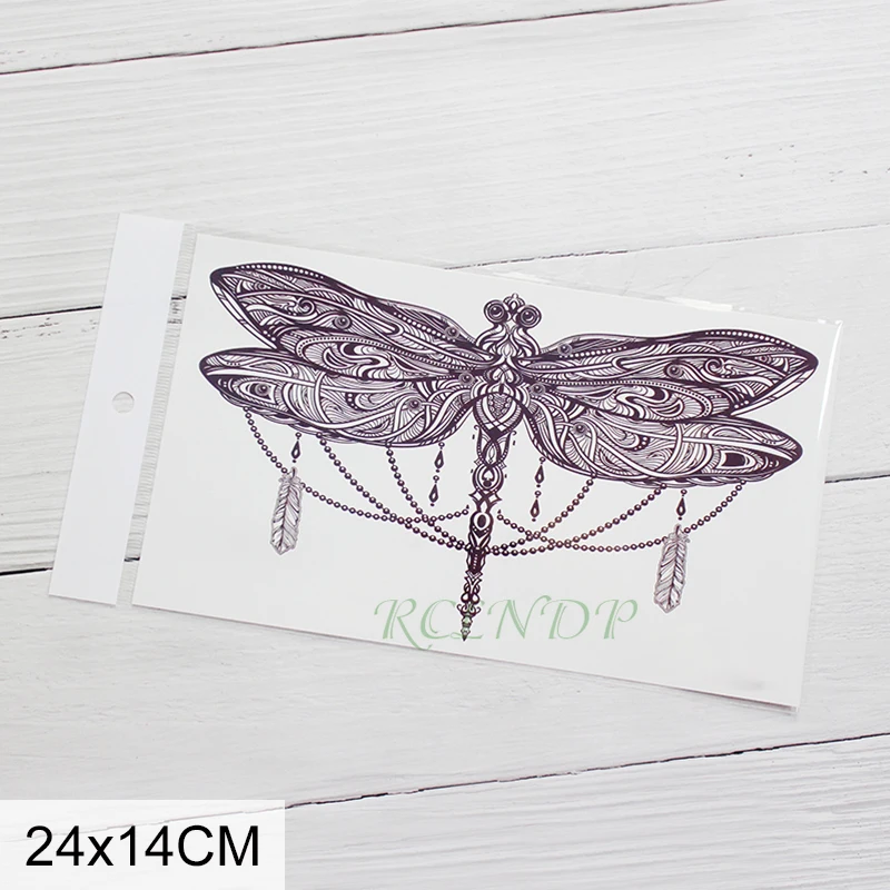 Водостойкая Временная тату-наклейка, ожерелье со стрекозой и перьями, искусственная татуировка для груди, груди, спины, живота, искусственная татуировка для женщин и девушек