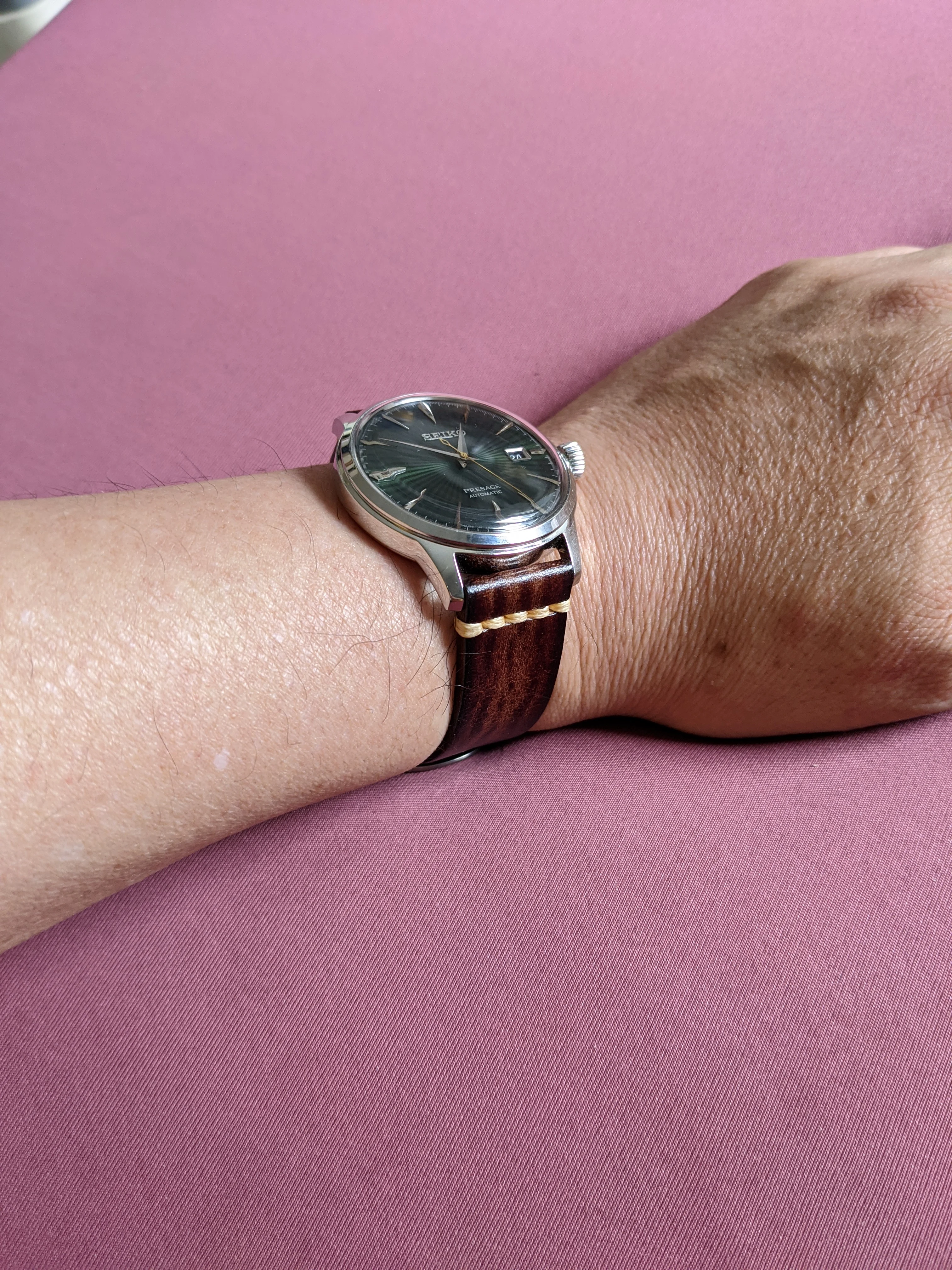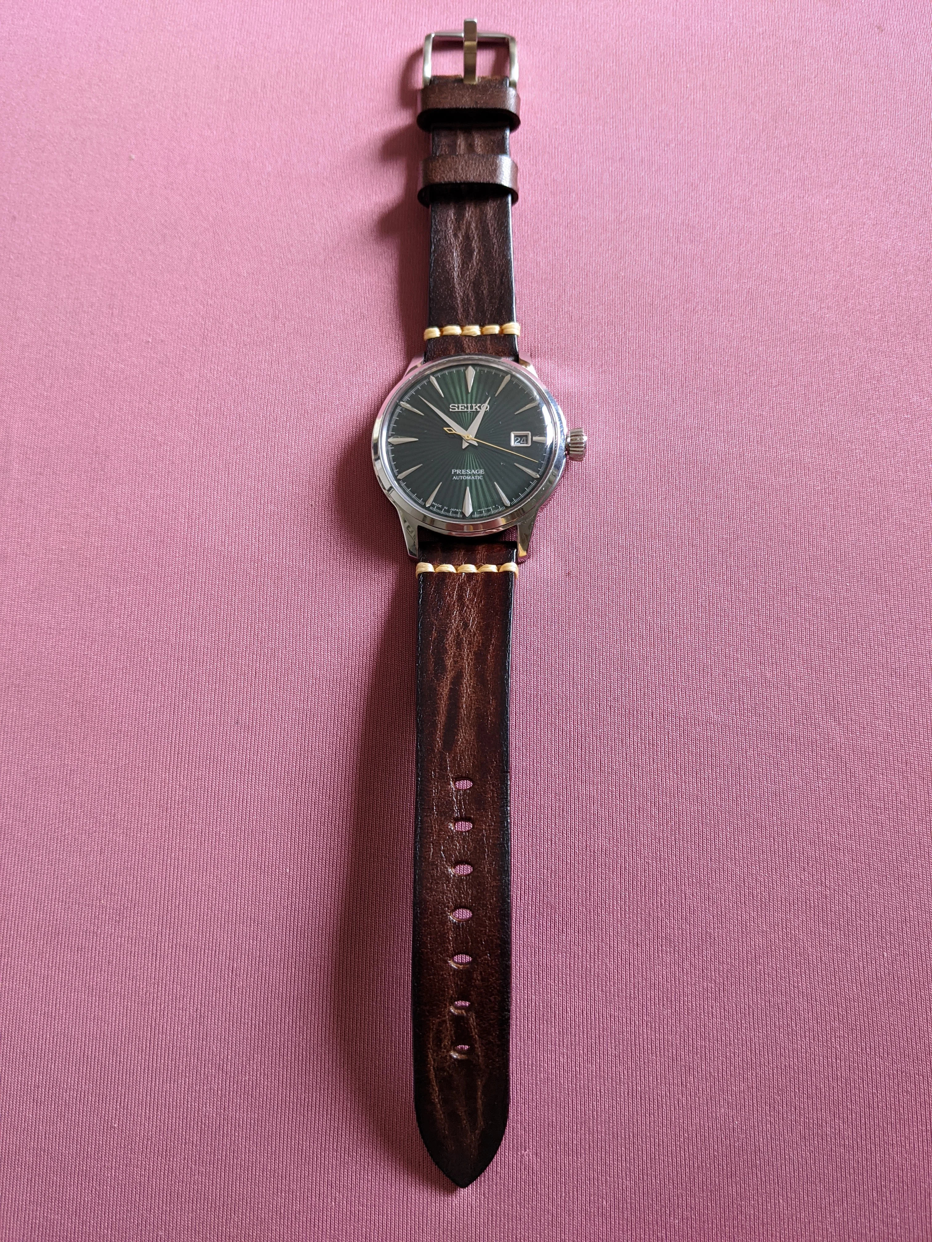Мне нравится этот ремешок для часов. Да, это дороже, чем много других ремешков для продажи на Aliexpress, но я думаю, что качество оправдает цену. На самом деле, это намного лучше, чем ремни, которые доступны здесь в США для 2x или 3x этой цены. Теперь это мой любимый ремешок с точки зрения качества и эстетики. Печенья именно то, что я хотел. Я настоятельно рекомендую.