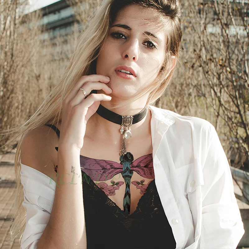 Водостойкая Временная тату-наклейка, Цветной Цветок стрекозы, большой искусственный тату для груди, груди, спины, живота, искусственная татуировка для женщин и девочек