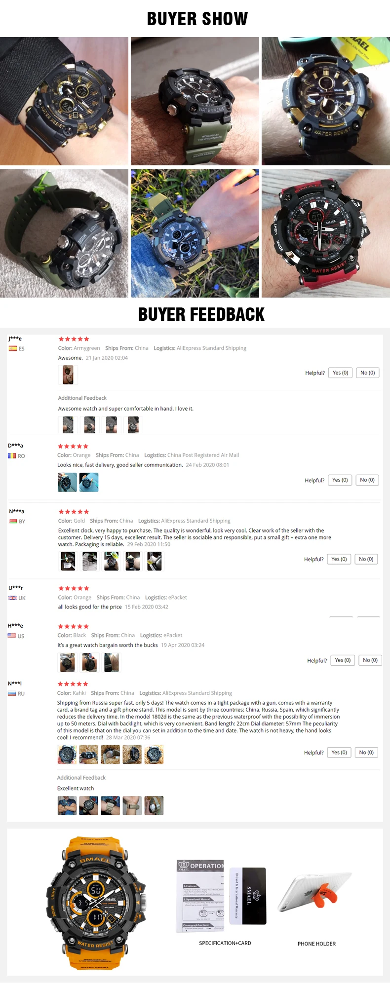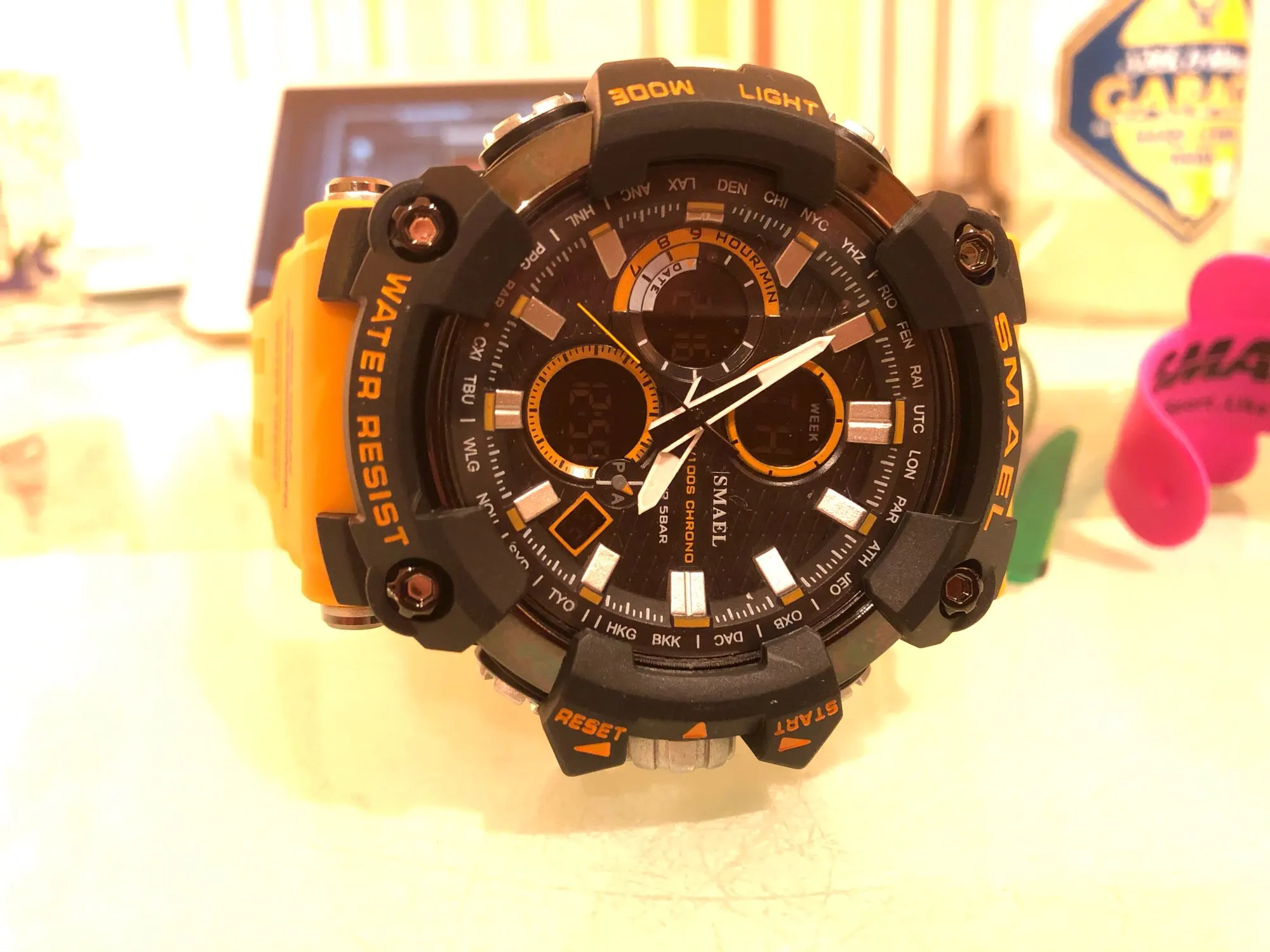 Крутейшие массивные часы! Будут прекрасными друзьями в приключениях и повседневных делах! Доставка в Украину Новой Почтой менее месяца. Упакованы достаточно, что бы дойти целыми. В комплекте шел подарок : подставка для телефона, гарантийная карточка, инструкция на китайском и английском языках. Однозначно рекомендую всем !