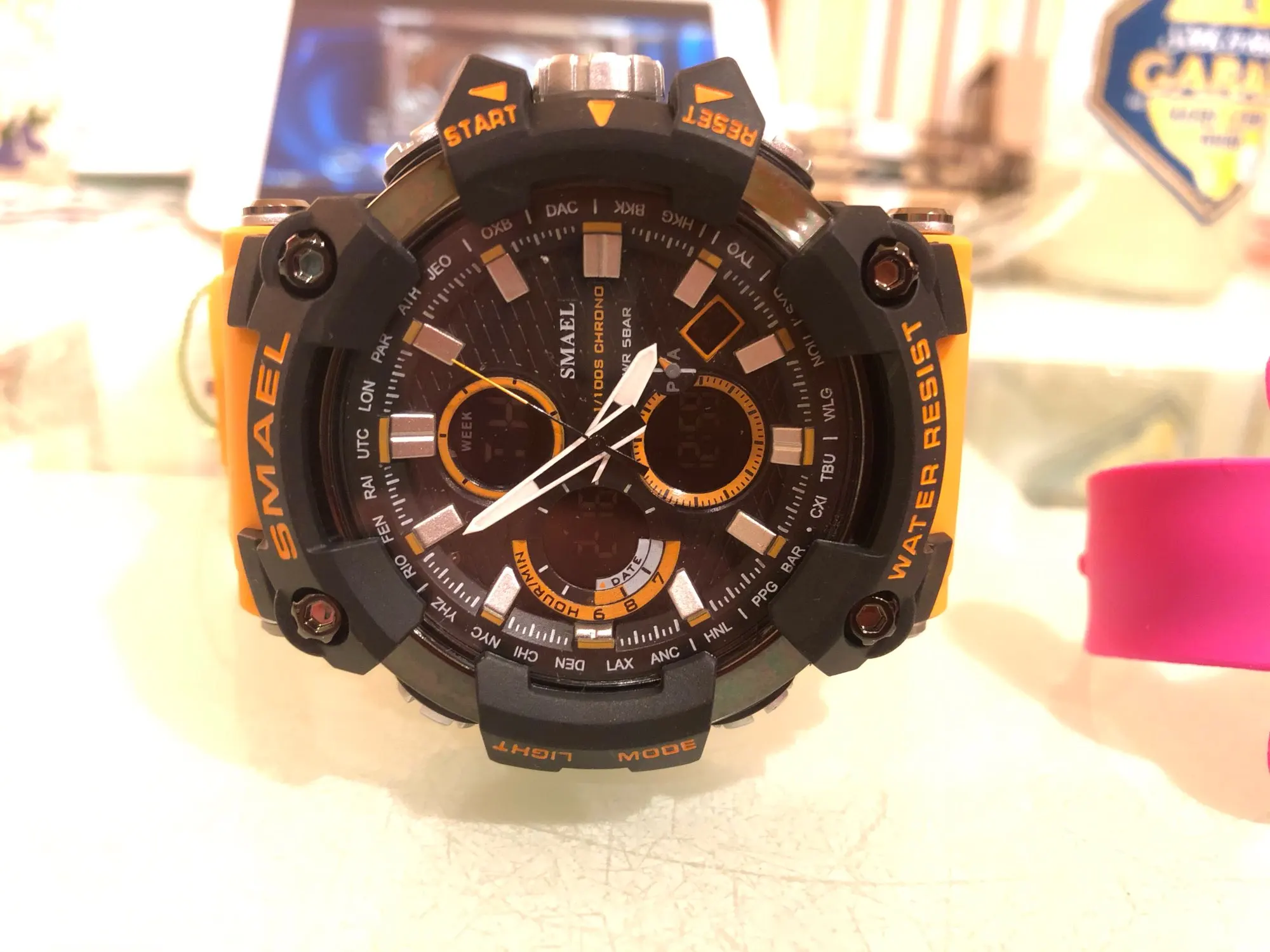 Выиграл в горячих товарах! Часы дошли в порядке. Они реально довольно большие, хотя и легкие. Есть подсветка и всякие функции. Надо разбираться. В подарок продавец сунул держатель для телефона в машину. Рекомендую!