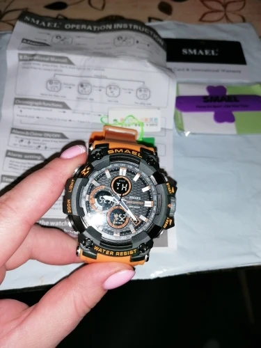 Красивые часы, в живую даже лучше чем на фото выглядят! Отправили посылку быстро, к нам ехала три недели. Часы классные, они крупные на взрослого человека подходят. Выглядят мощно, стильные, массивные с разными функциями, в подарок положили свой фирменный держатель для телефона! Есть инструкция и можно посмотреть обзоры на ютубе. Продавец молодец! Большое ему спасибо!