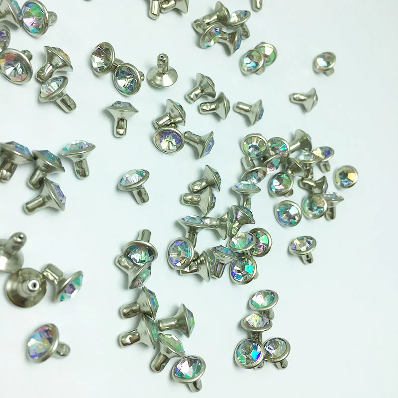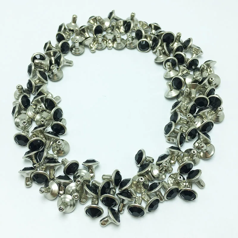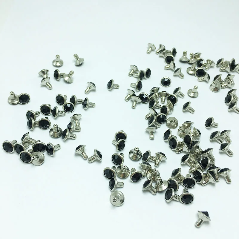 100 комплектов, кристаллы AB, черные заклепки из горного хрусталя, стразы, шпильки, сделай сам, ручная работа, сумка для одежды, обувь, декоративные рекусающие шипы, стеклянные буровые кнопки
