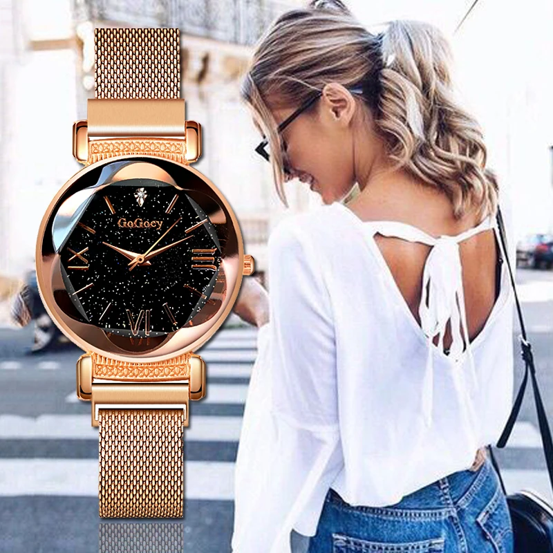 Женские часы Gogoey Starry Sky, женские часы с браслетом из розового золота, женские часы, роскошные часы, подарок для женщин