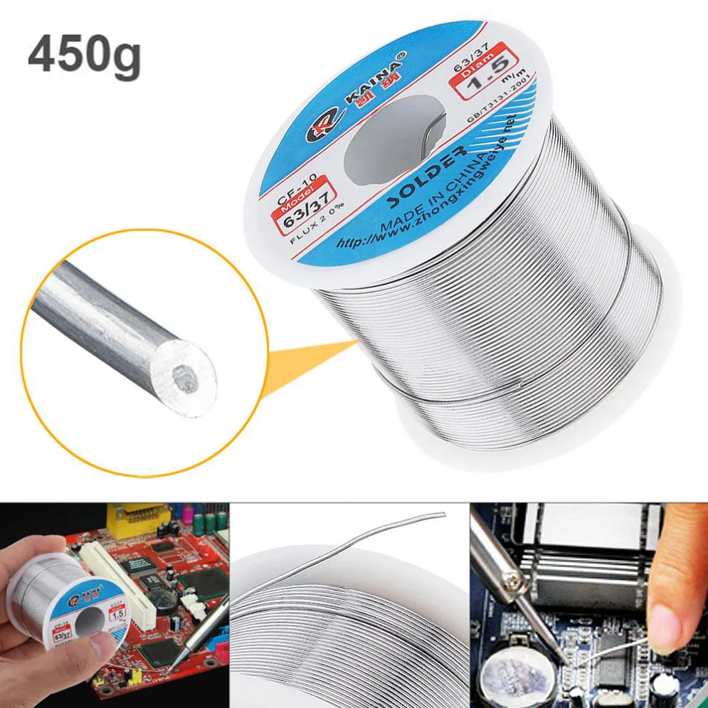 Оловянный тонкий провод 6337 450 г 0,5 мм-2,0 мм, припой с канифолью, с 2% флюсом и низкой температурой плавления для электрического паяльника