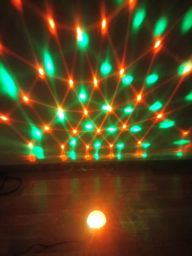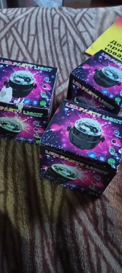 Отличная вещь! Прекрасный фонарь для вечеринок и других мероприятий. Цвета яркие, работает от сети. При помощи пульта можно выбрать режим работы света, в такт музыке или другие варианты. Батарейка для пульта в комплект не входит, так что будьте готовы приобрести отдельно. Я очень довольна качеством, в комплект также входит небольшой кронштейн для фиксации на стенах или потолке помещения. Очень и очень радует! Просто космос! Доставка в Петербург заняла около месяца. Продавца рекомендую с удовольствием!
