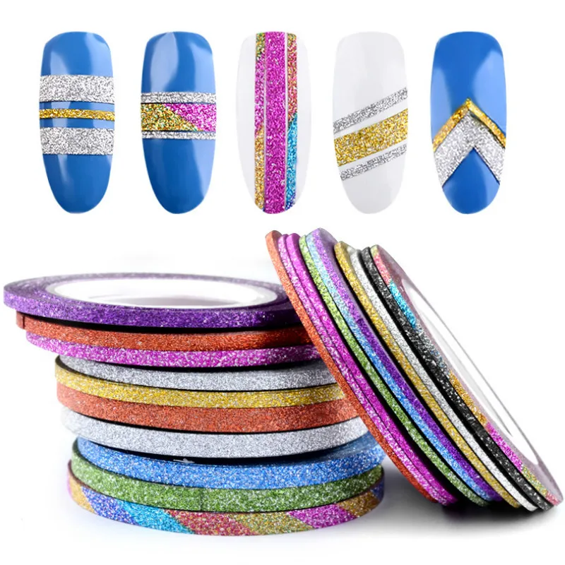 Лента с блестками для дизайна ногтей, 123 мм, 10 рулонов