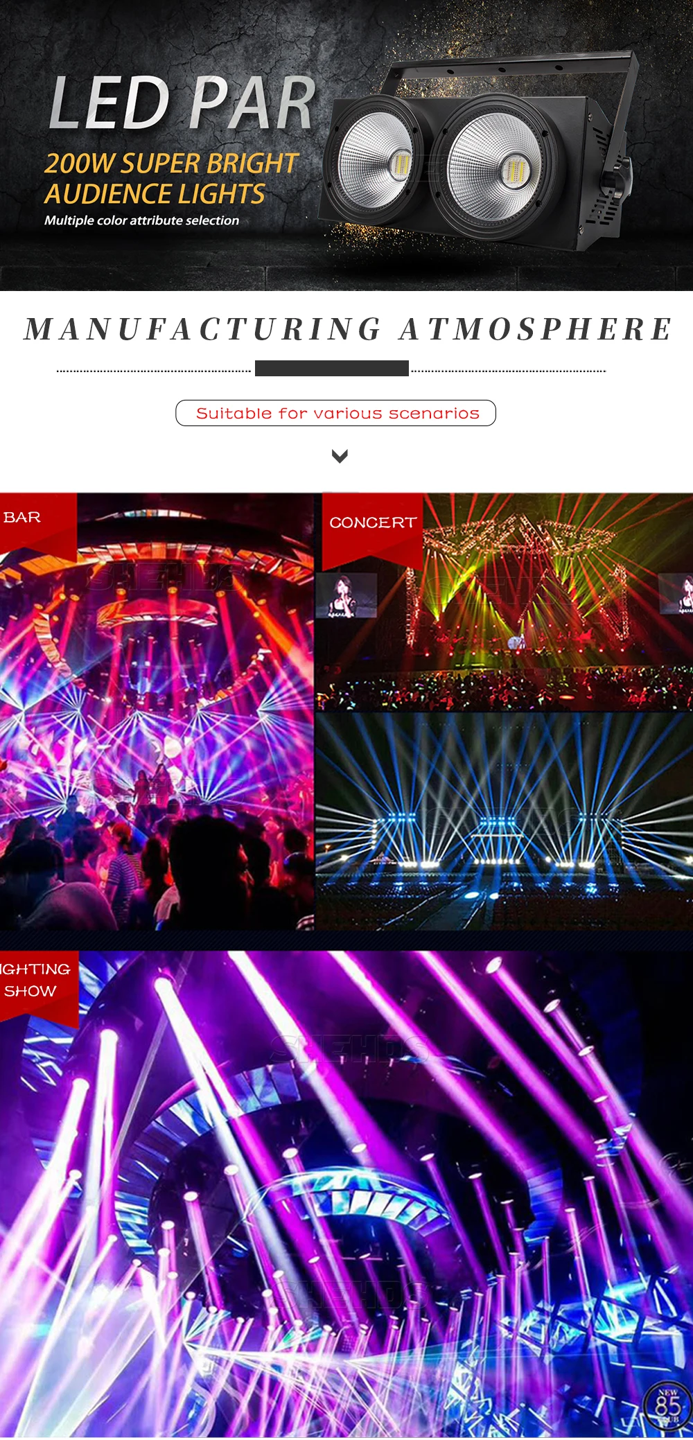 Светодиодное освещение Par 200W COB, двери сарая, Dmx контроллер, сценический эффект, освещение для диджея, магазина, дискотеки, церкви, сада