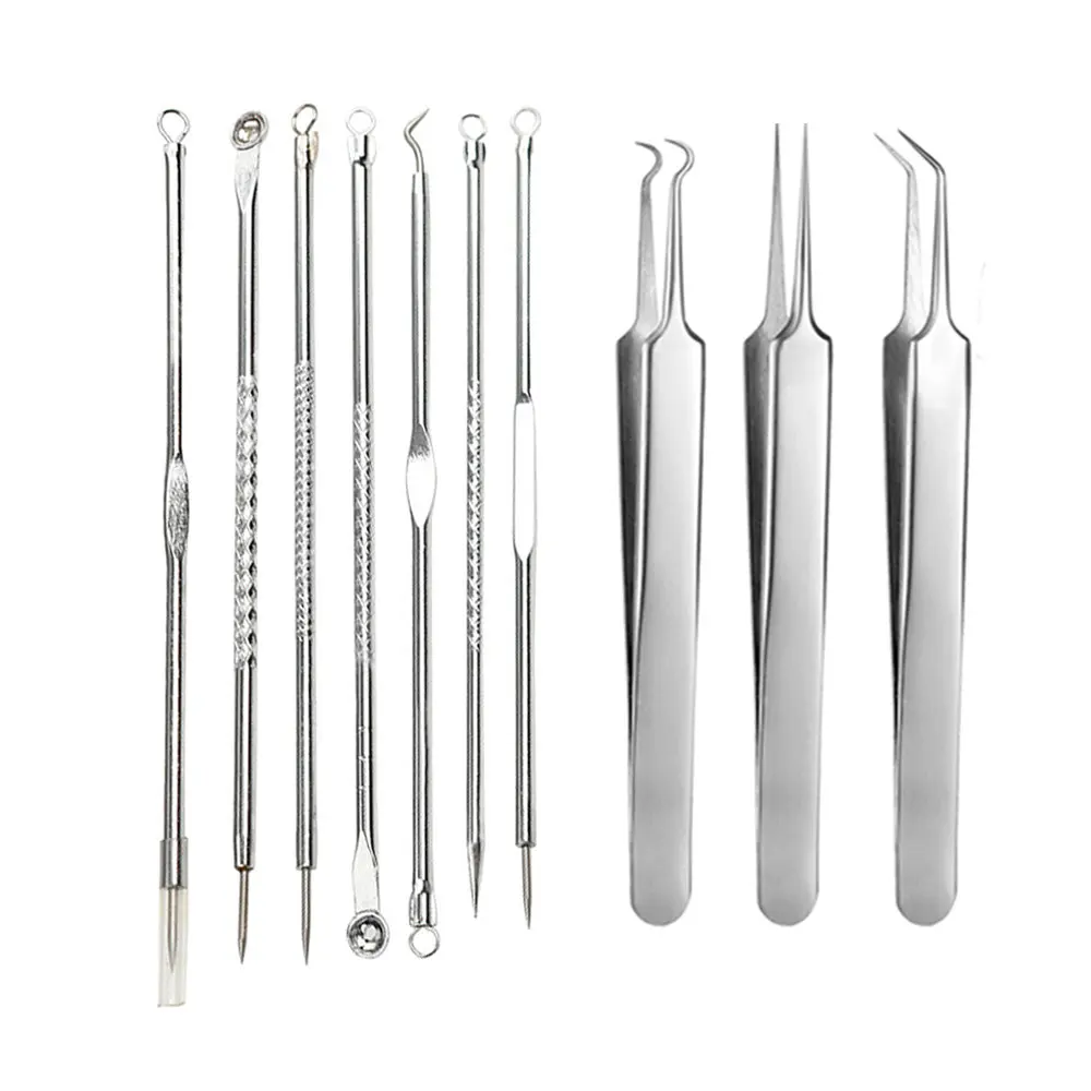 10 шт.компл. инструменты для удаления угрей, пинцет для удаления угрей, экстрактор прыщей, чёрных точек, комедонов Acn
