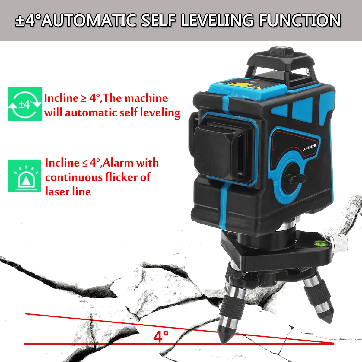 Лазерный уровень, 12 линий, синий свет, 4D, автоматический самонивелирующийся, поворот на 360 градусов, вертикальный, горизонтальный, поперечный Нивелир, измерительные инструменты