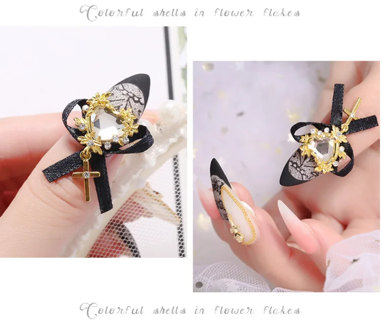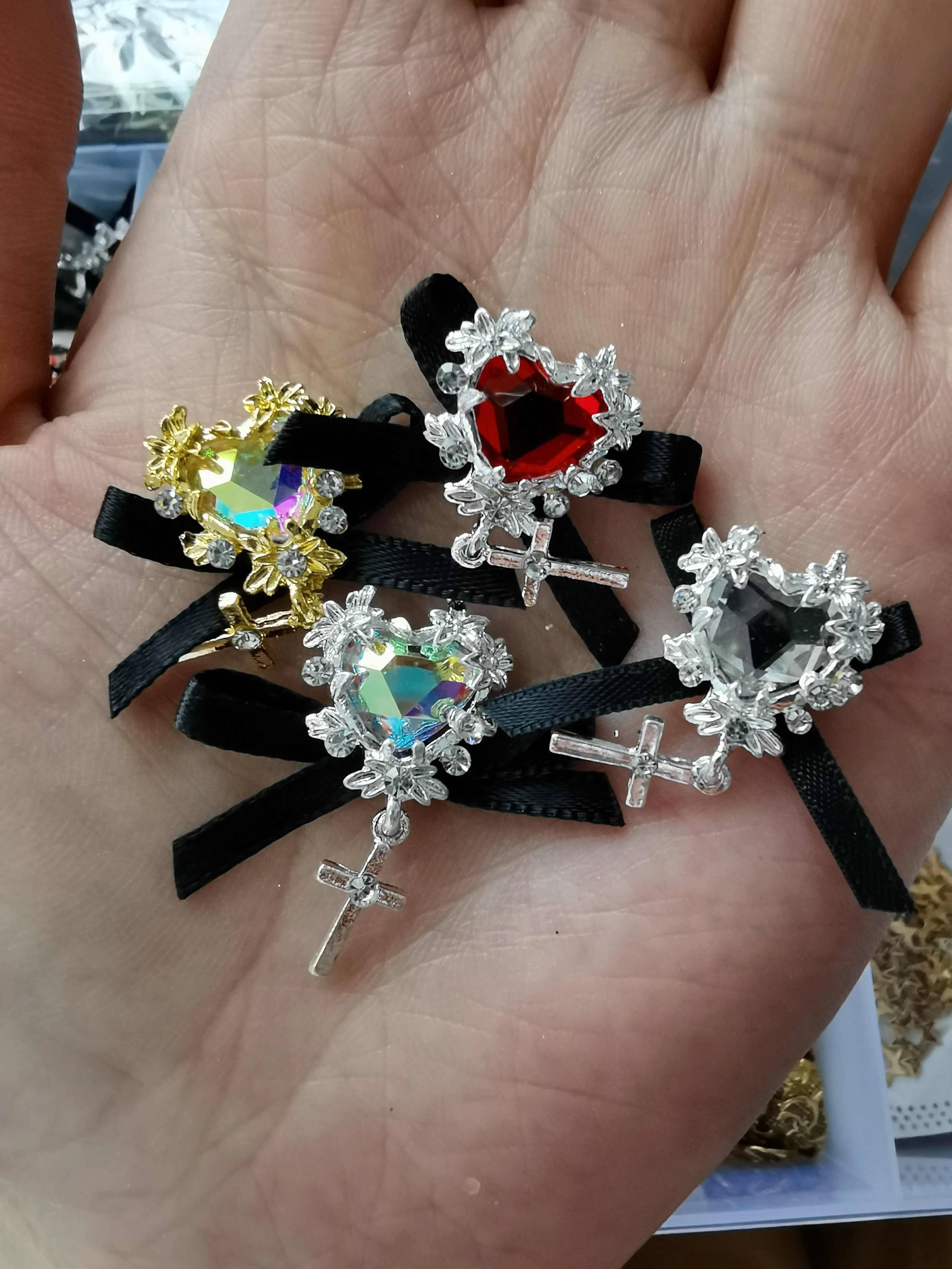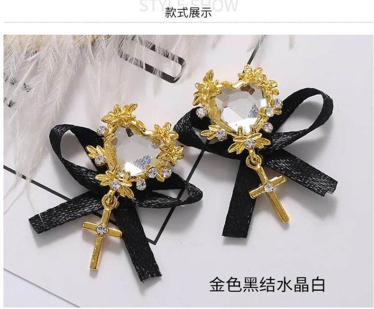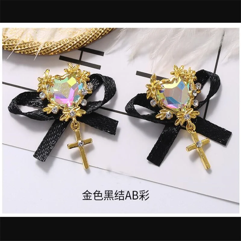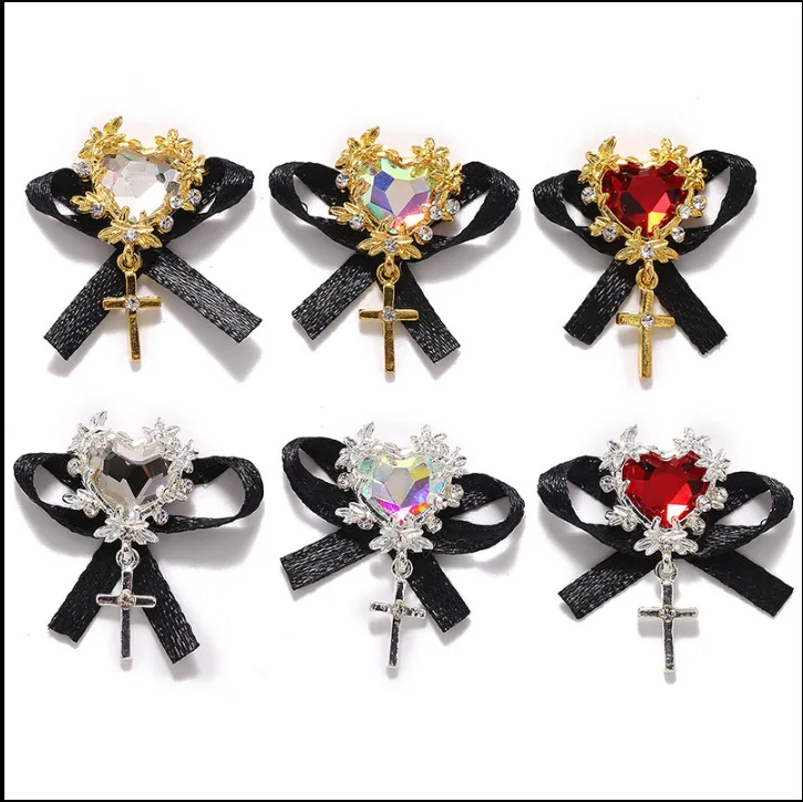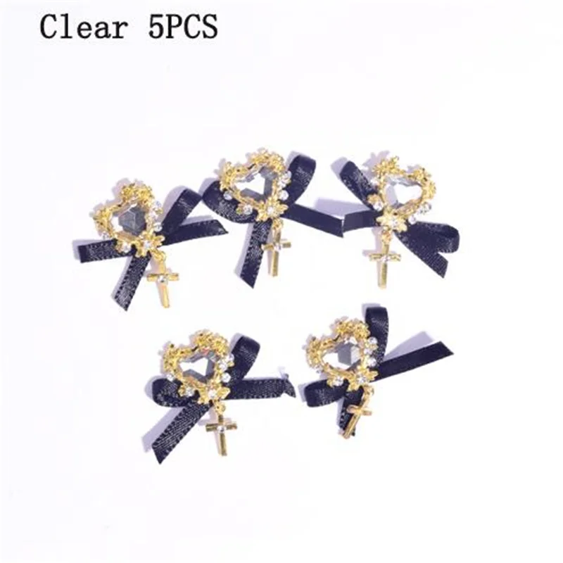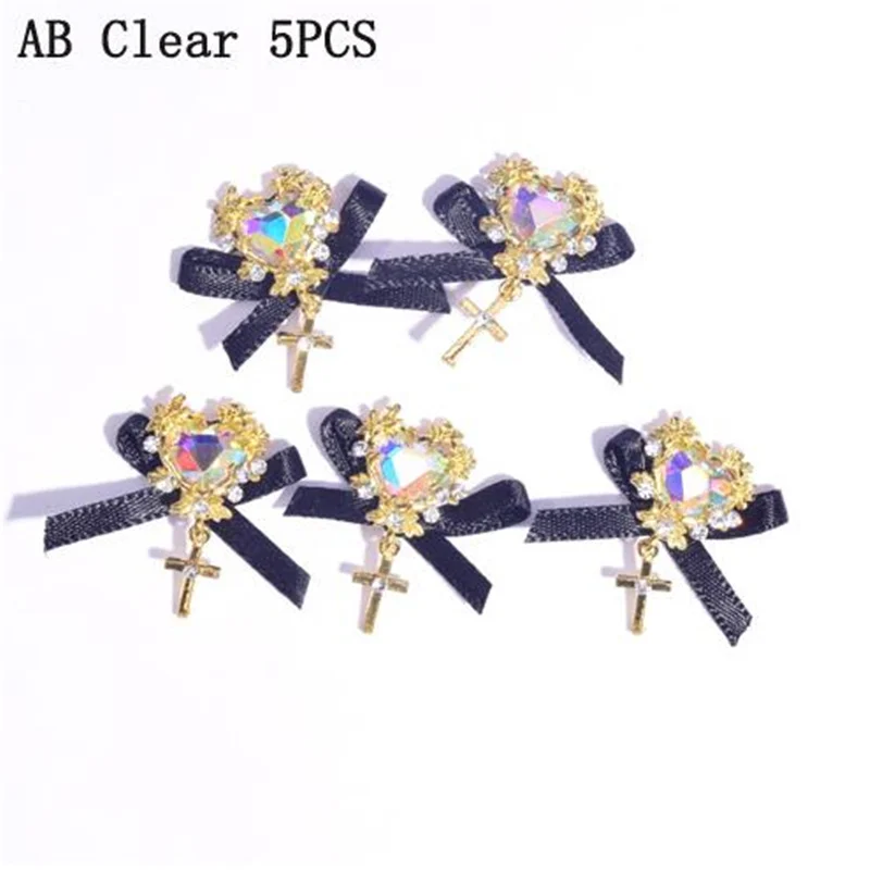 5 шт.лот, прозрачныйAB сплав, черный бант, ретро 3D дизайн ногтей, украшения, ювелирный камень, японский стиль, крест, маникюр, дизайн, новый шарм для ногтей