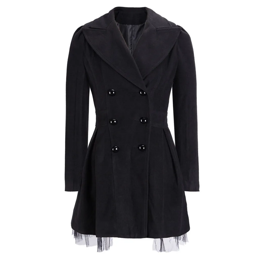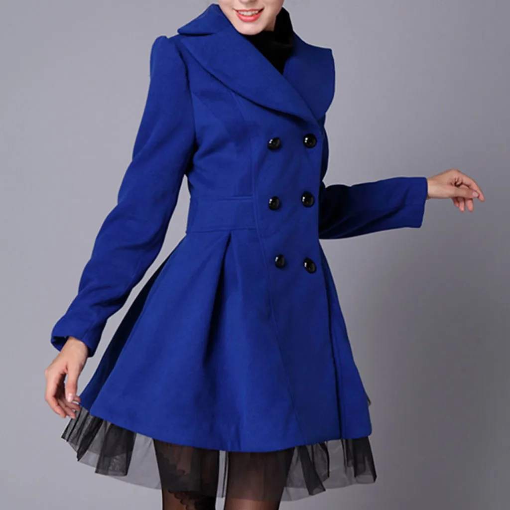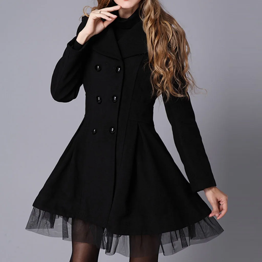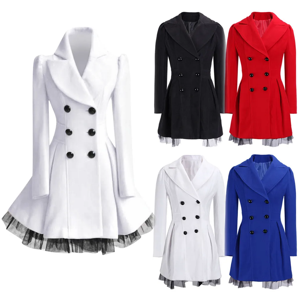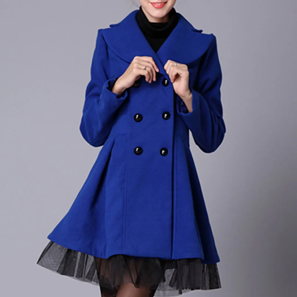 Женский двубортный Тренч с расклешенными рукавами, зимнее пальто с отложным воротником, длинная приталенная верхняя одежда, Peacoat размера плюс # g3