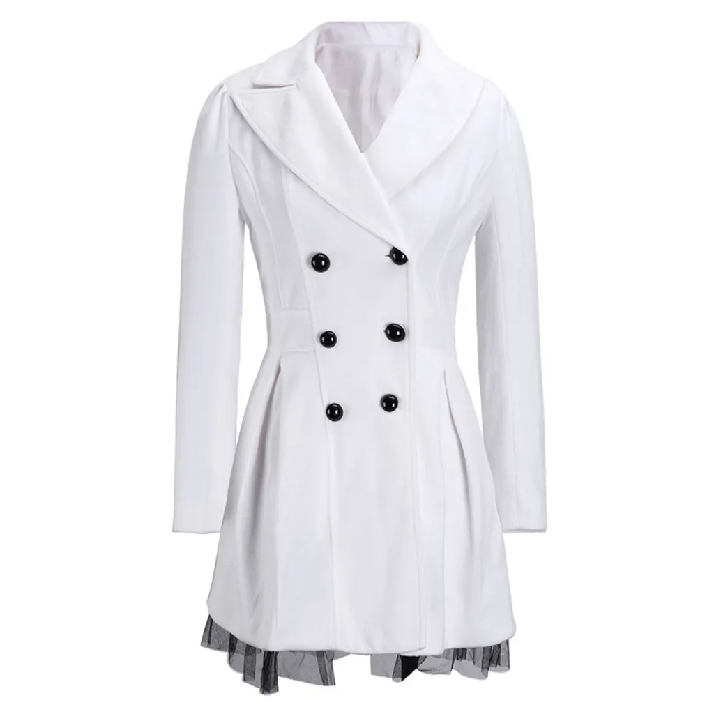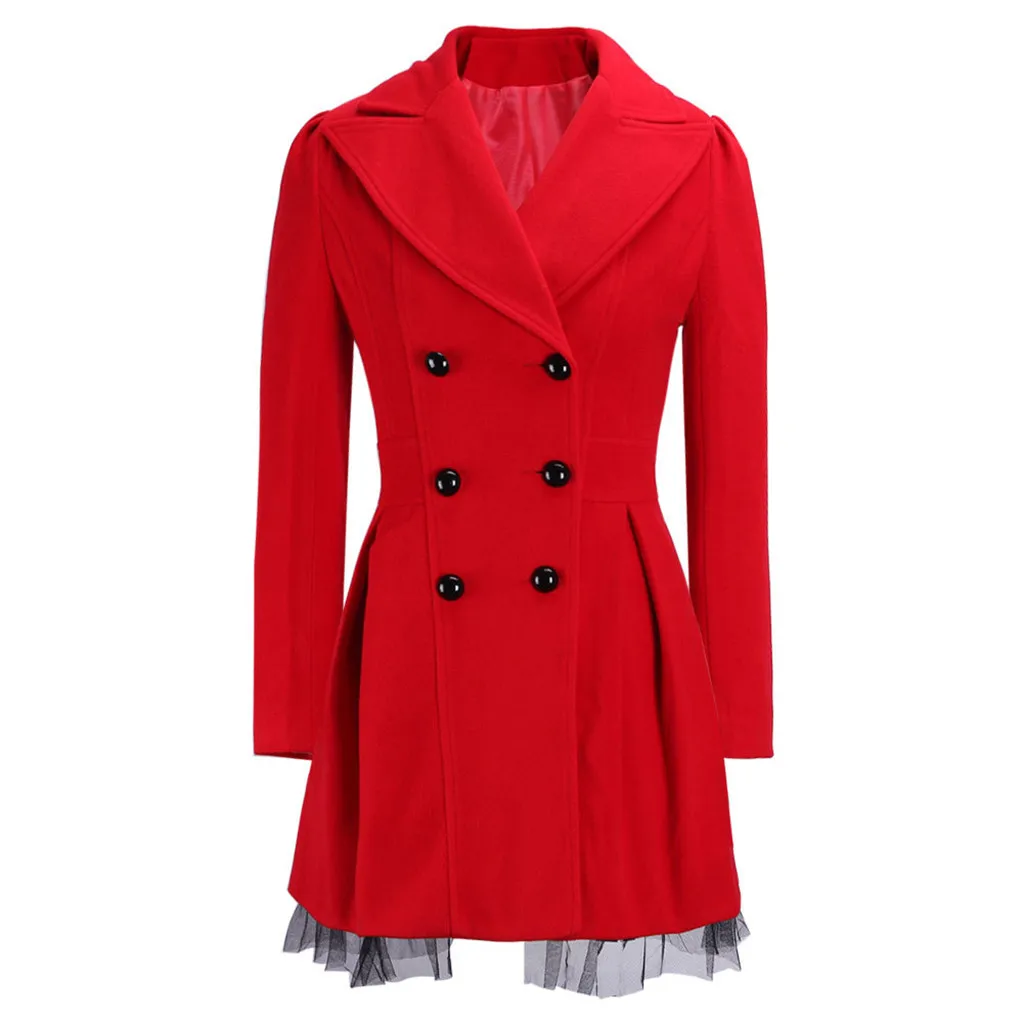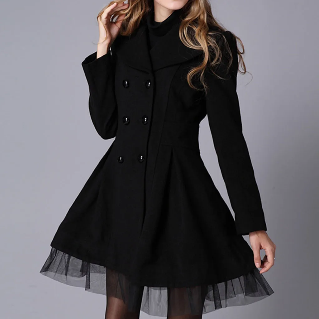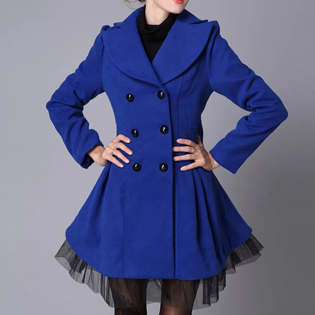 Женский двубортный Тренч с расклешенными рукавами, зимнее пальто с отложным воротником, длинная приталенная верхняя одежда, Peacoat размера плюс # g3
