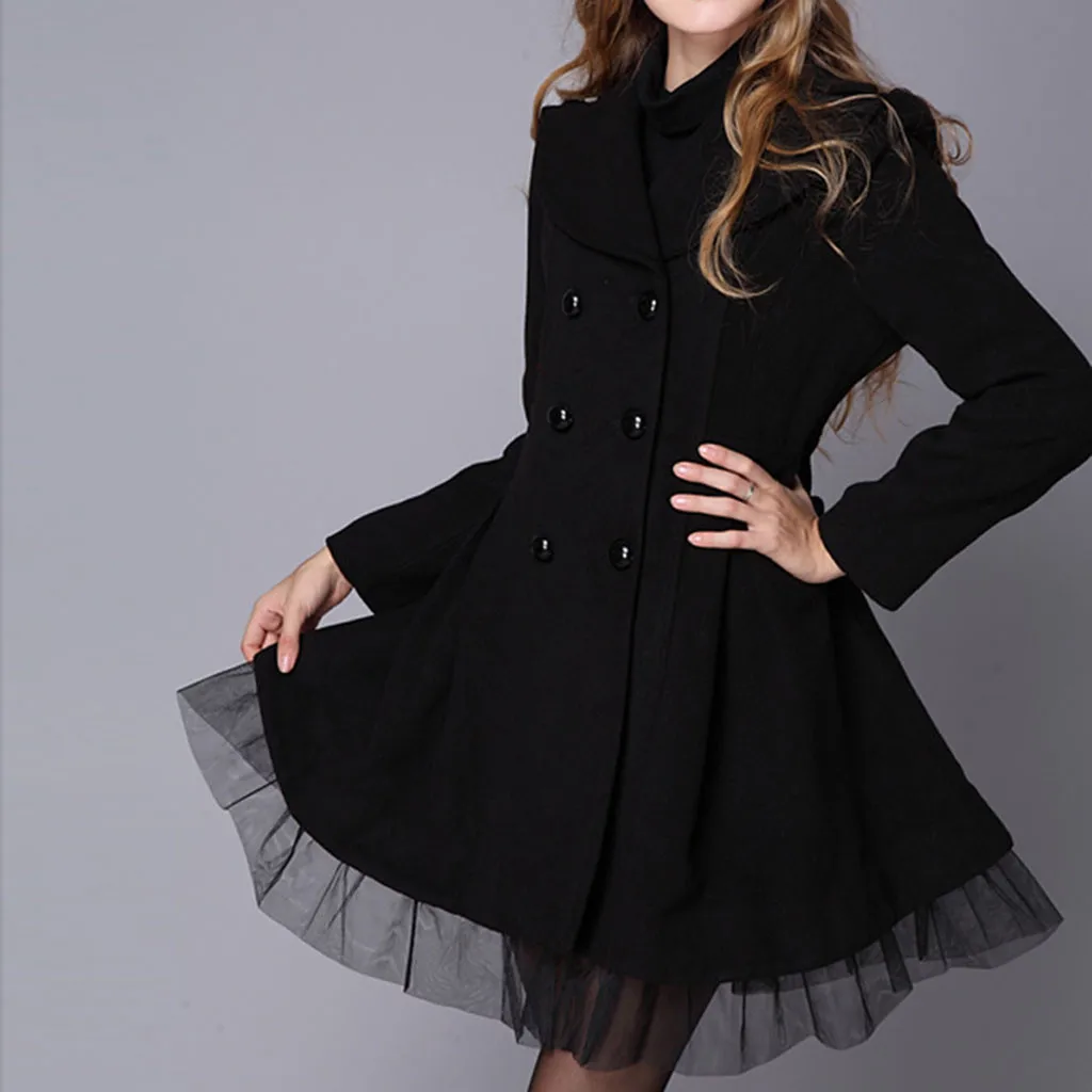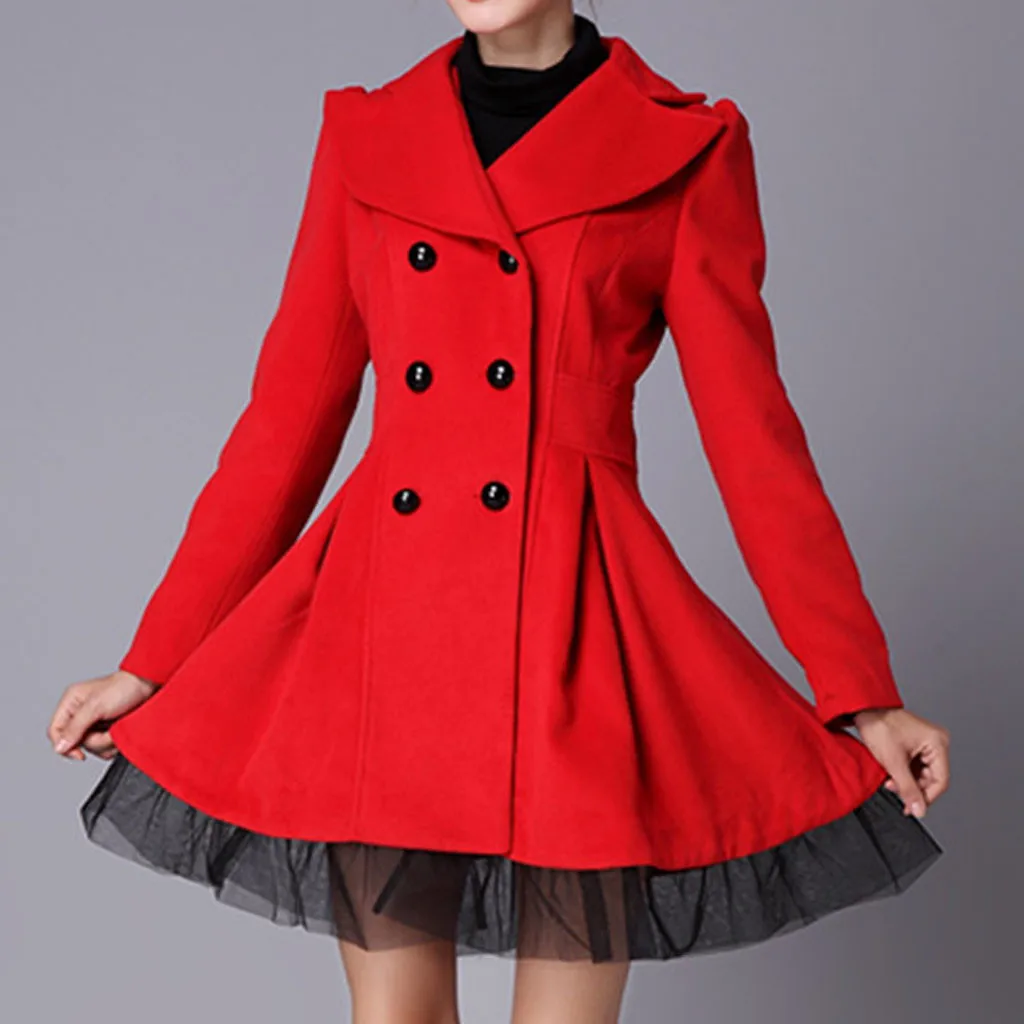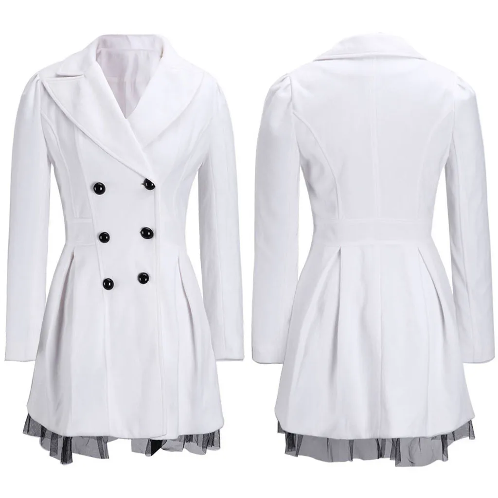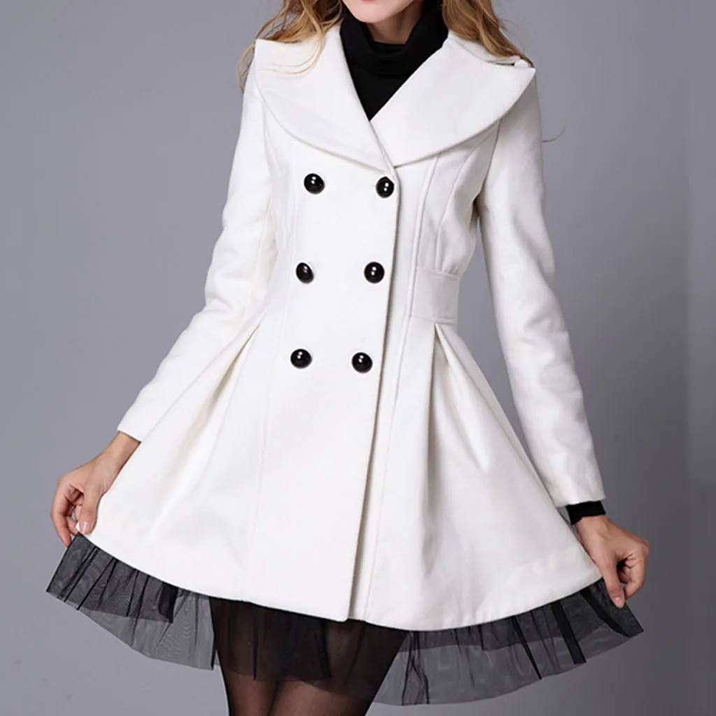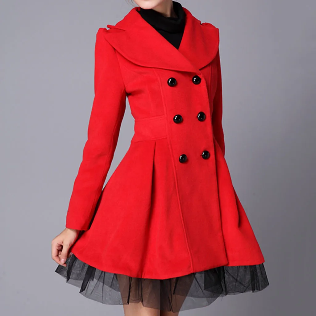 Женский двубортный Тренч с расклешенными рукавами, зимнее пальто с отложным воротником, длинная приталенная верхняя одежда, Peacoat размера плюс # g3