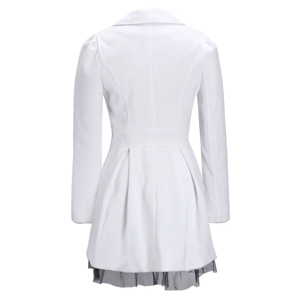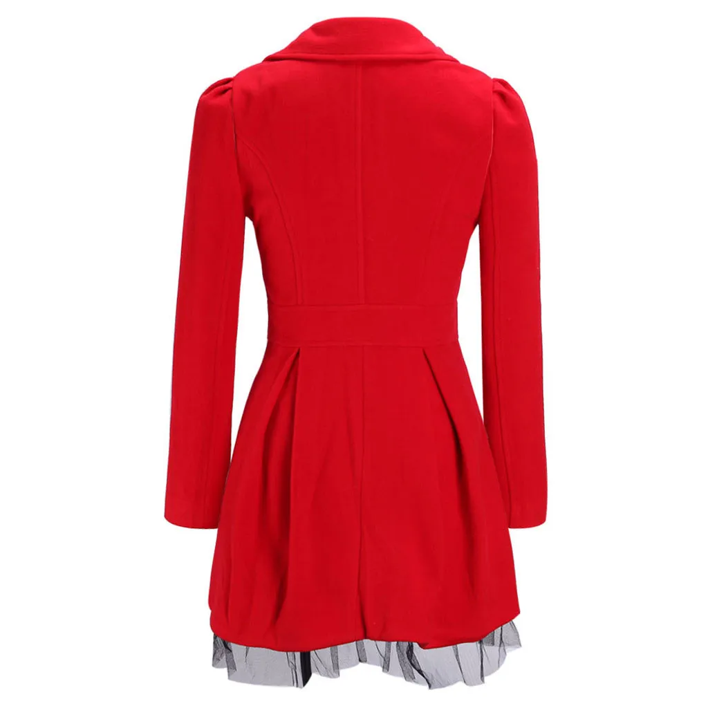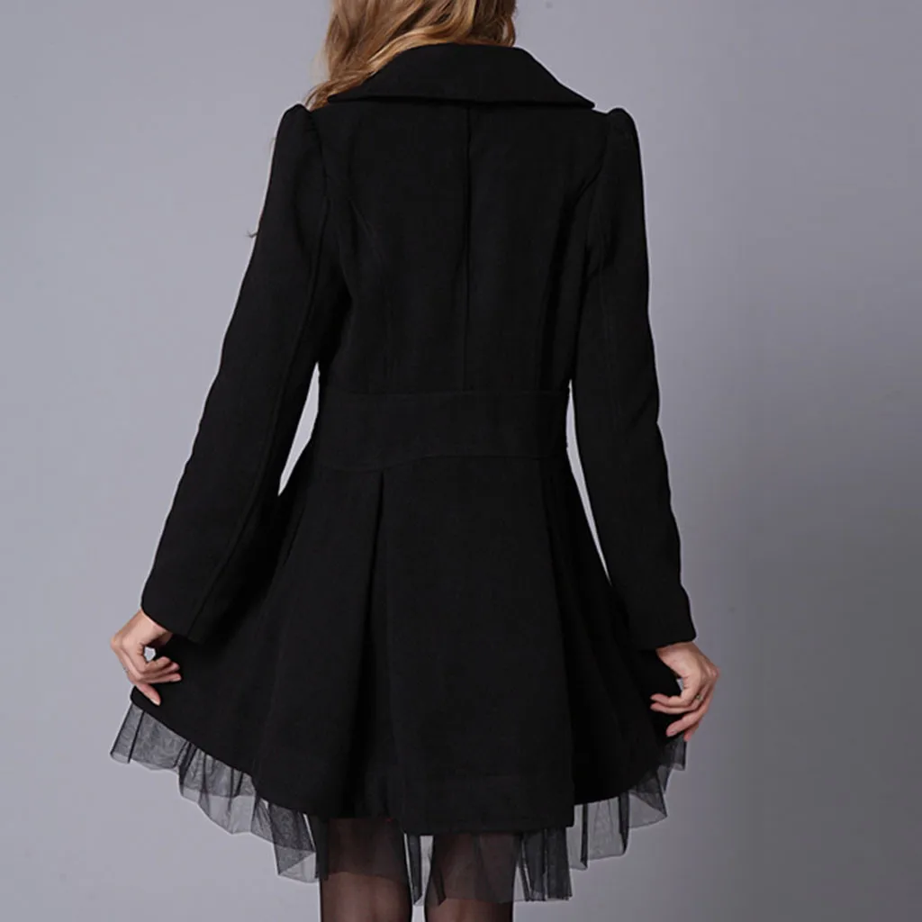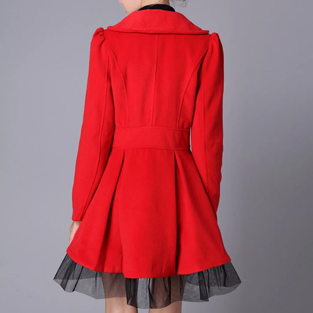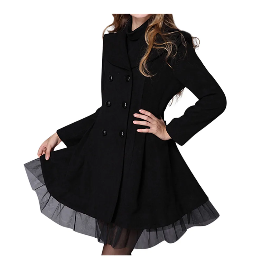 Женский двубортный Тренч с расклешенными рукавами, зимнее пальто с отложным воротником, длинная приталенная верхняя одежда, Peacoat размера плюс # g3