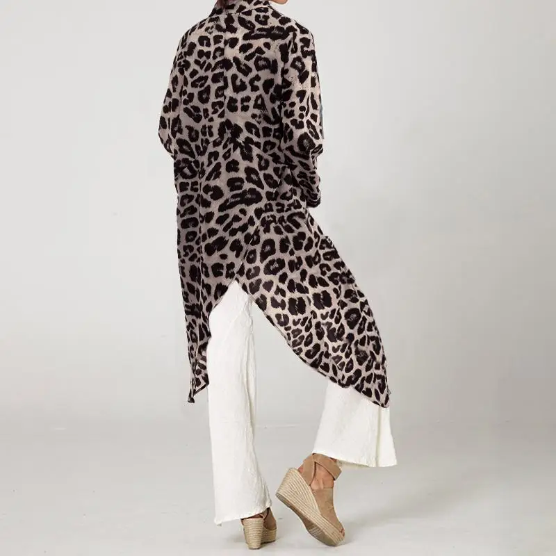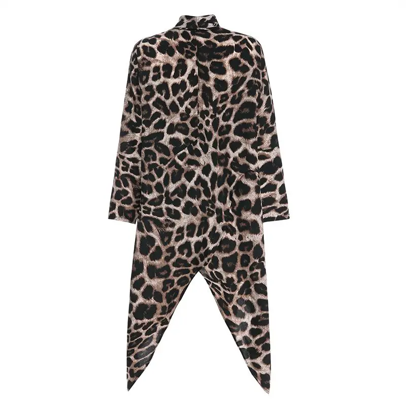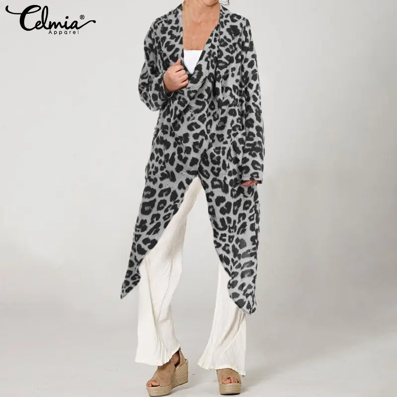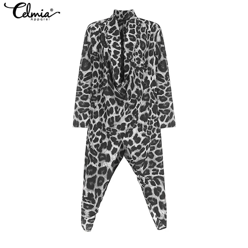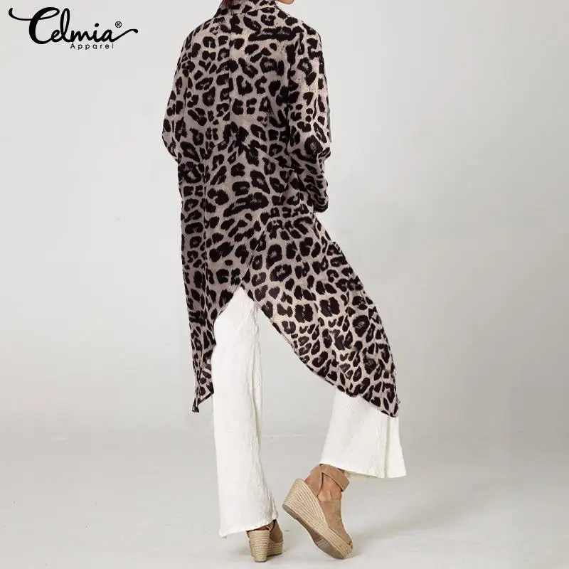 Женские топы и блузки Celmia, винтажные Асимметричные рубашки с леопардовым принтом и воротником-хомутом, Осенние повседневные женские блузки с длинным рукавом, 2021