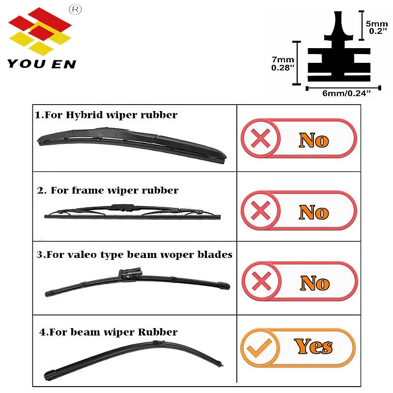 -Бренд: YOUEN-Ширина: 6 мм-идеально подходит для бесщеточных дворников-состав: 2 шт. заправки стеклоочистителей-Простая установка, быстрое удаление-легко моется, дайте четкий обзор снова для вас-Качество: класс AAA (в нашем магазине все стеклоочистители класса a +, пожалуйста, заказывайте бесплатно) -Если вы получаете 2 стеклоочистителя для лобового стекла, вы можете разобрать пополнение вручную, чтобы разделить его на 2 заправки