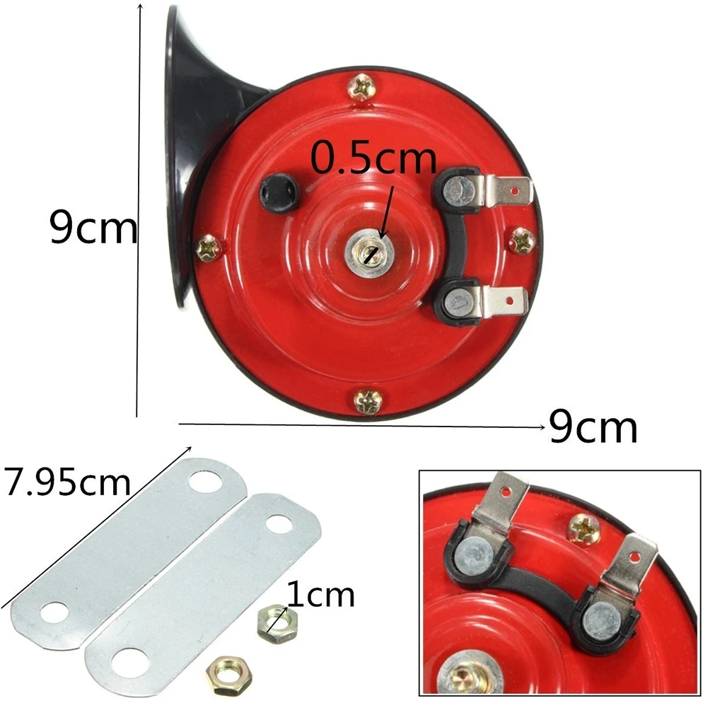 2 шт., водонепроницаемая Универсальная Автомобильная сирена с громким звуком, 12 В Технические характеристики: Изготовлен из высококачественного материала, очень прочный. Стильная улитка, водонепроницаемая. Универсальный для всех автомобилей и транспортных средств 12 В. Название изделия: Автомобильный рожковый механизм Материал: металл Номинальная мощность: 100 Вт Напряжение: 12 В Децибел: 180DB Частота: низкая: 410 Гц, высокая: 510 Гц Характеристики: улитка, водонепроницаемая, громкая, универсальная Диаметр: 9 см/3,54 "(прибл.) Примечания: Благодаря светильник и экрана Цвет Товара может быть s светильник ly отличается из-за характеристик монитора компьютера. Пожалуйста, имейте в виду, что возможны незначительные отклонения в размерах из-за различных измерений вручную. Посылка включает в себя: 2 автомобильных рога