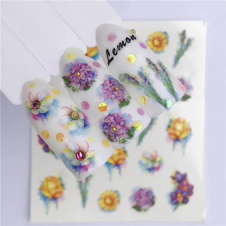 1 лист цветной цветок переводные наклейки для ногтей наклейки с узо...