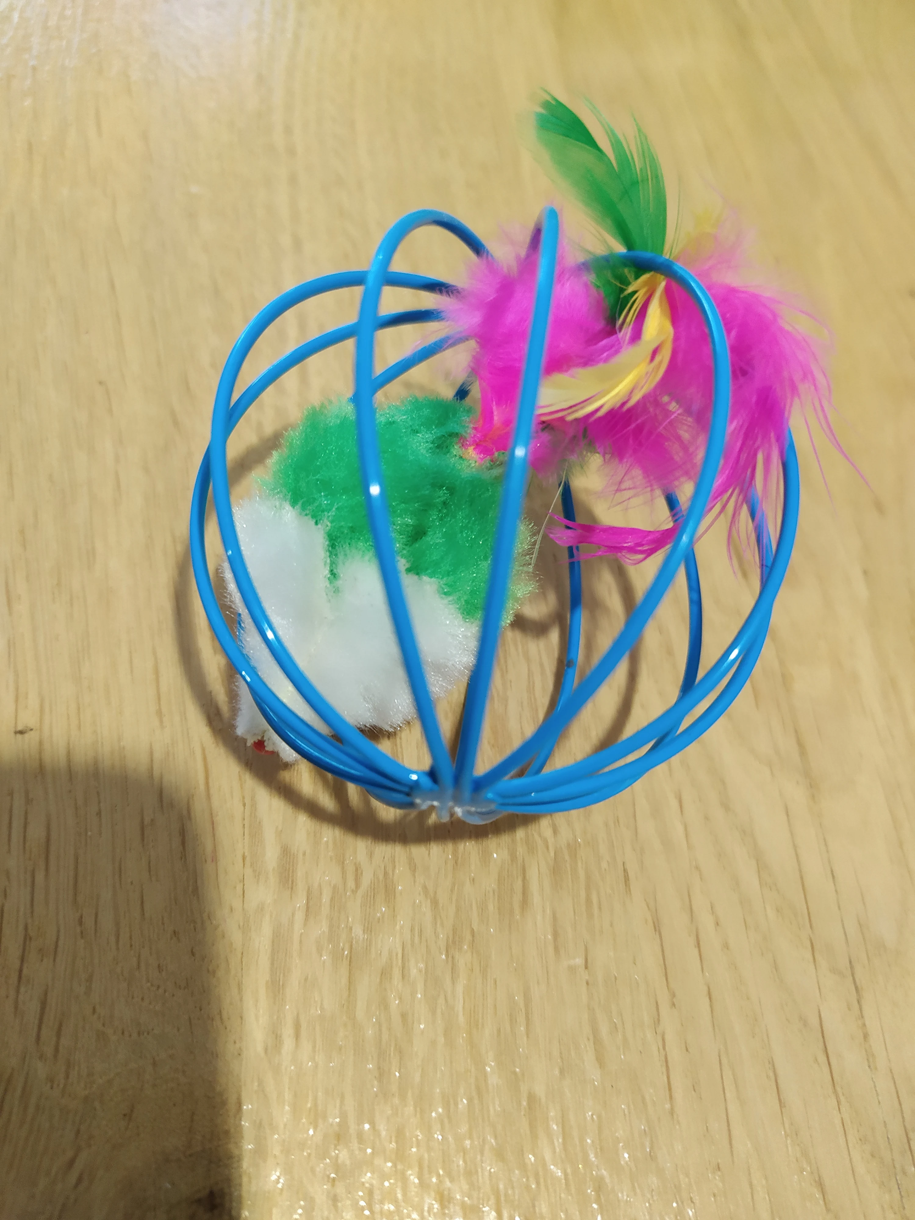 шар металлический,кошке понравился сразу. единственное что по паркету/ламинату шумный, пришло очень быстро,почти за 4 недели