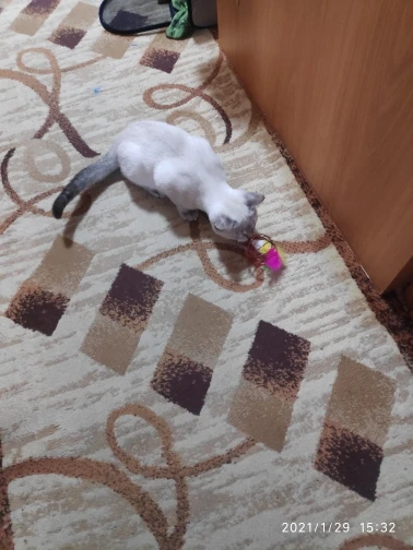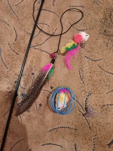 игрушка классная, кошке понравилось, играет, носиться по всей квартире. Розовое перо кошка выдрала в первый же день, но это было ожидаемо