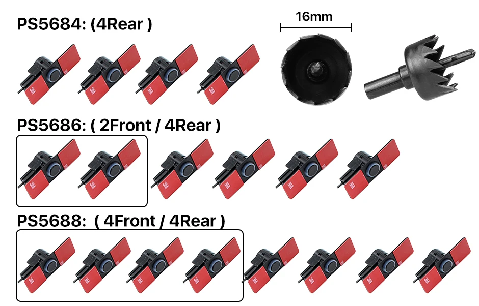 * 16 мм передний/задний плоский датчик парковки (7 цветов на выбор):