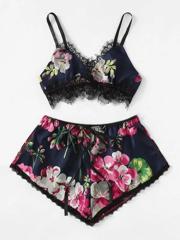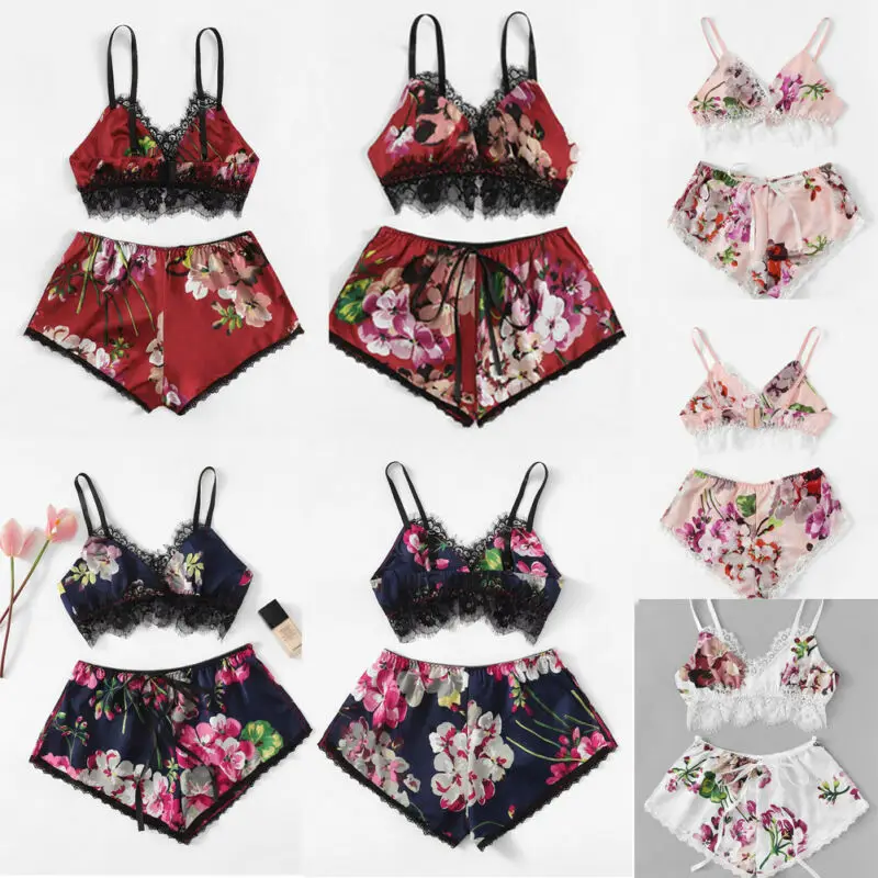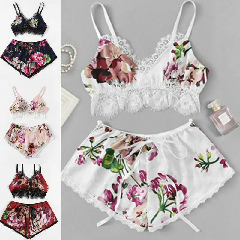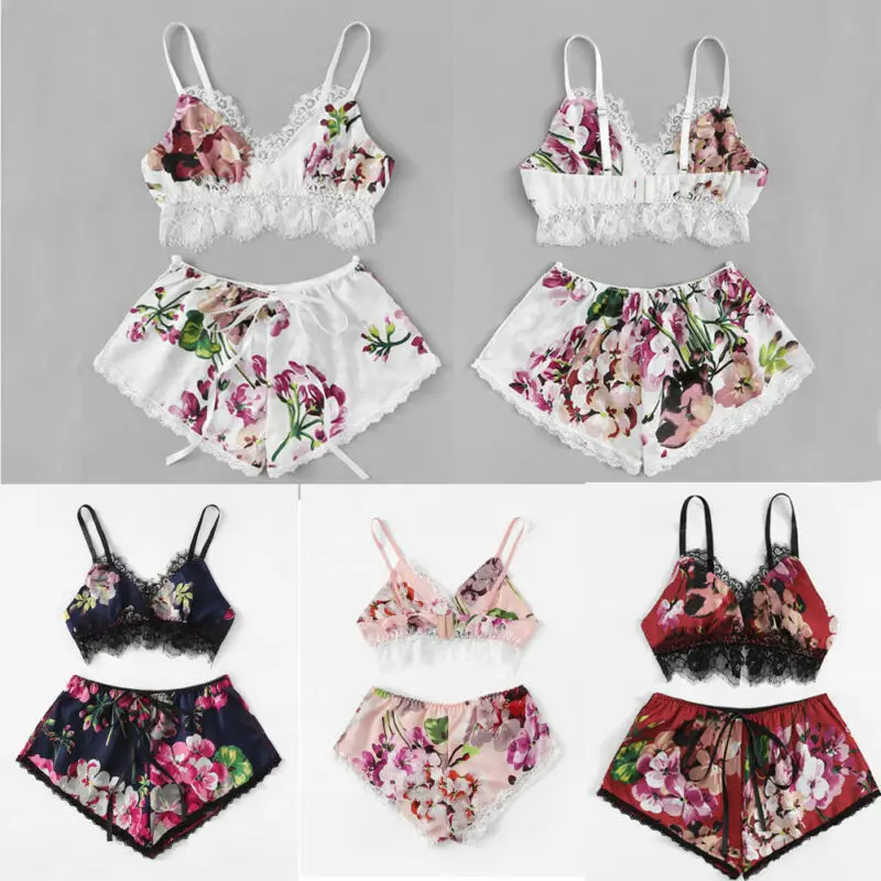 Комплект из 2 предметов, женский сексуальный Экзотический цветочный комплект нижнего белья, женское ночное белье, нижнее белье, Пижама + стринги, ночная сорочка, домашняя одежда